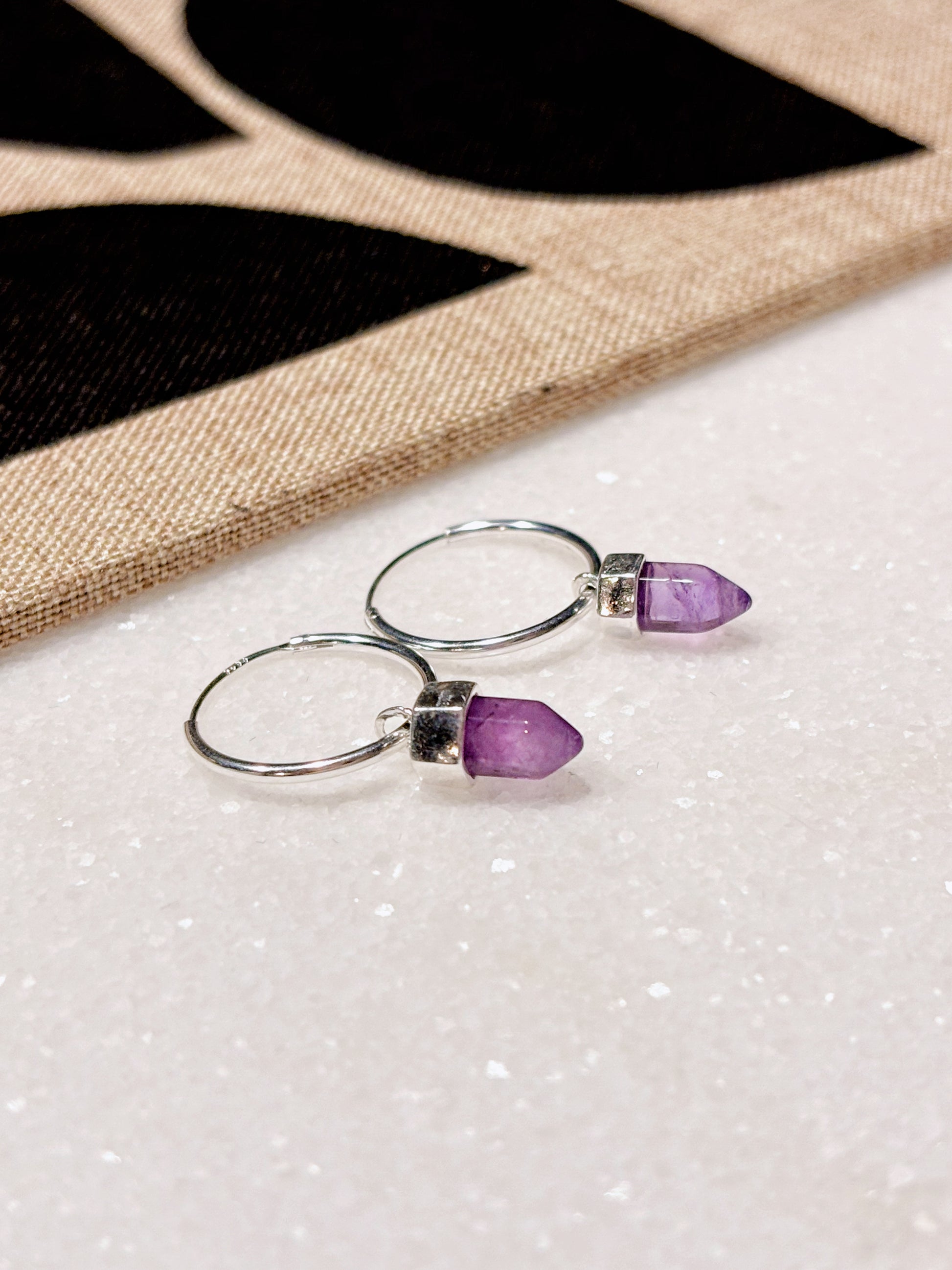 Aros argolla en plata ley 925 con amatista natural son más que un accesorio: son una declaración de estilo, equilibrio y energía positiva.