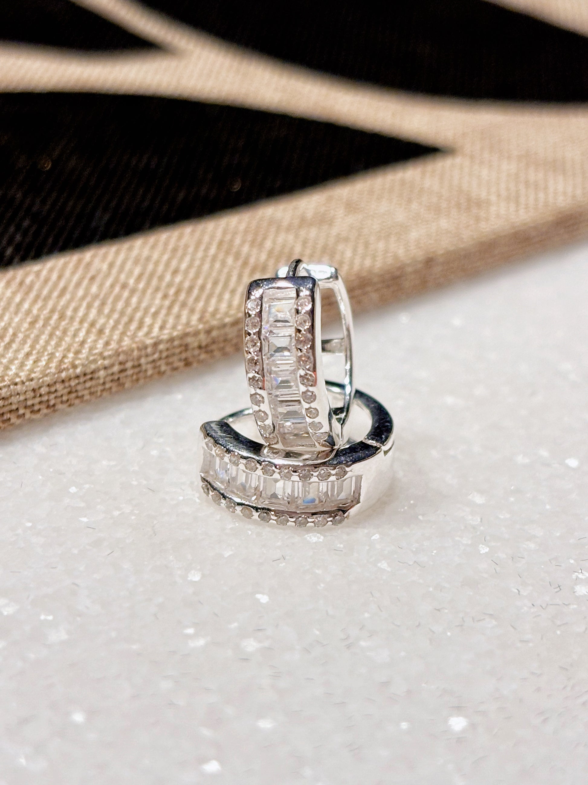 Aros tipo huggie en plata ley 925 con circones y cristales son el toque sutil que transforma tu look con elegancia y estilo. Modernos y versátiles.