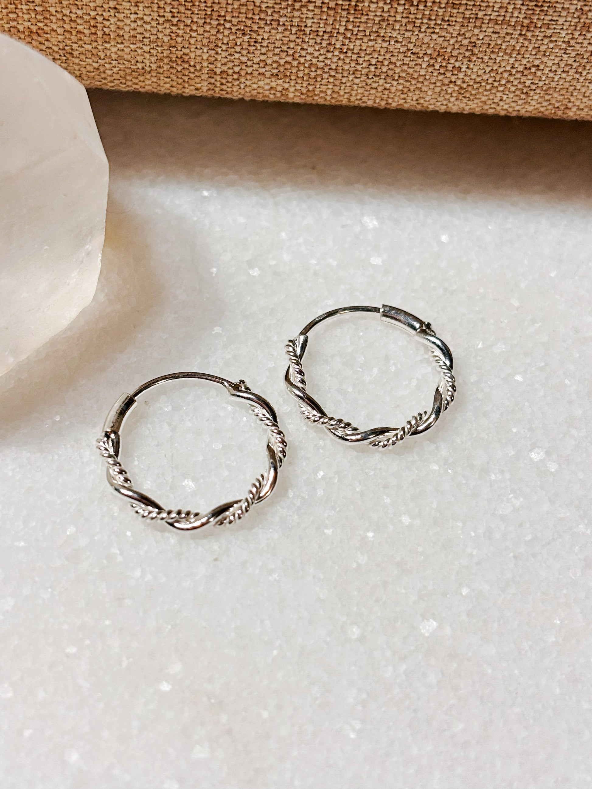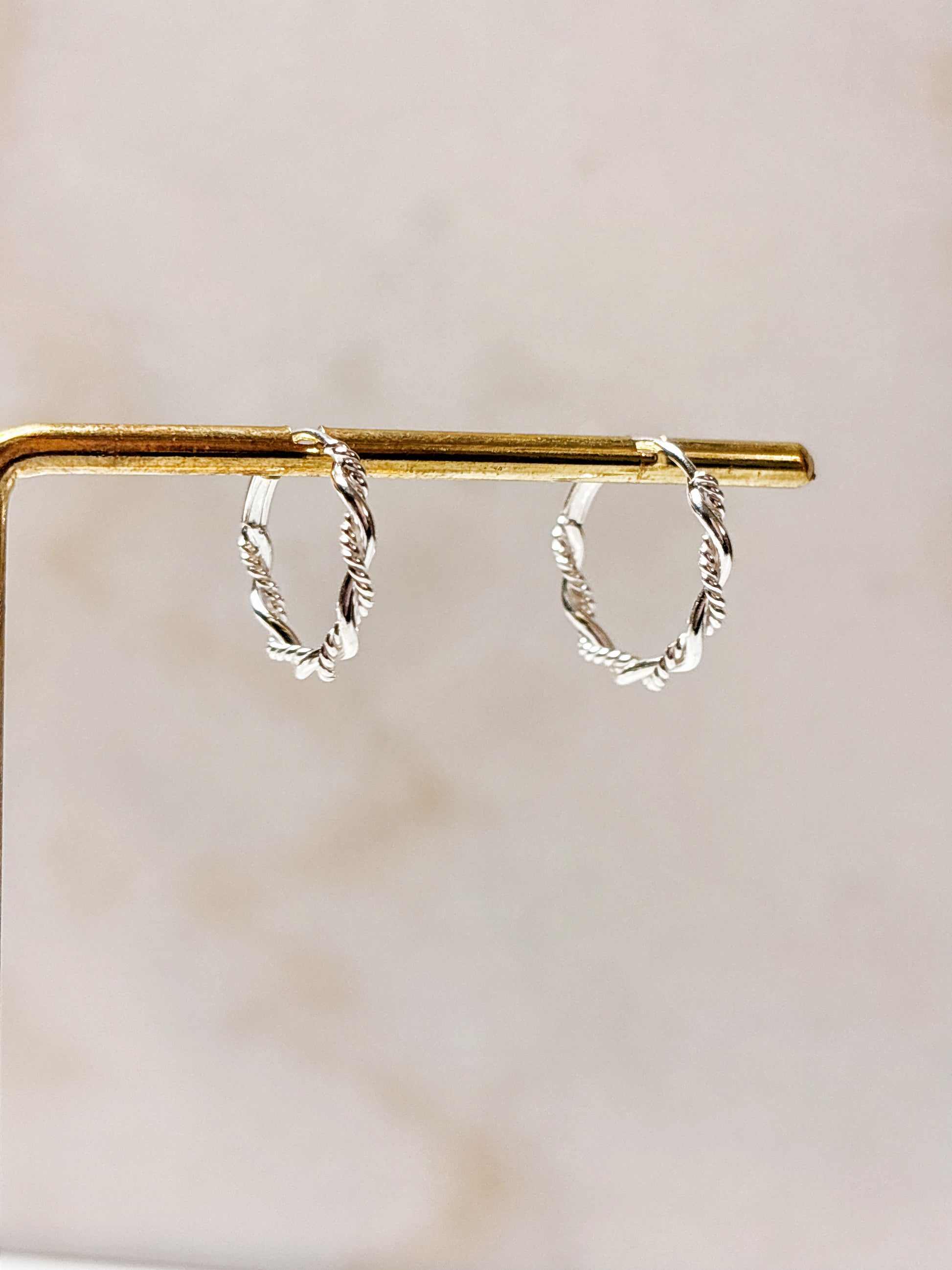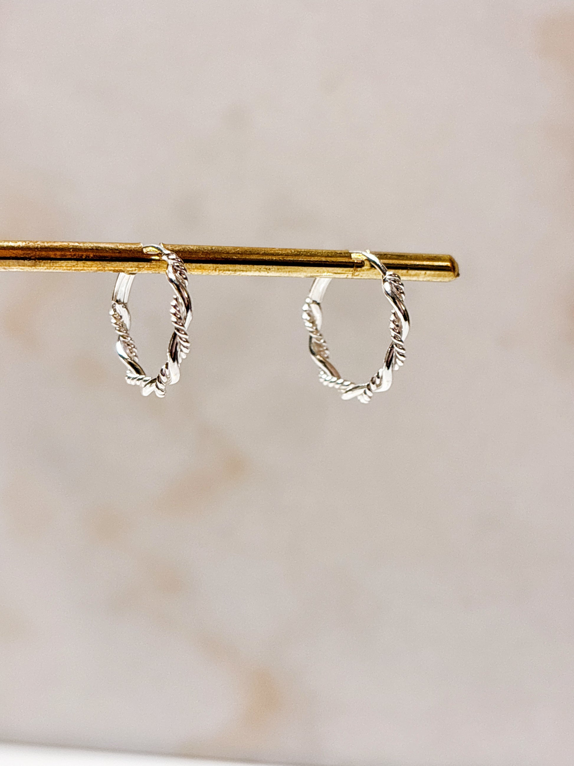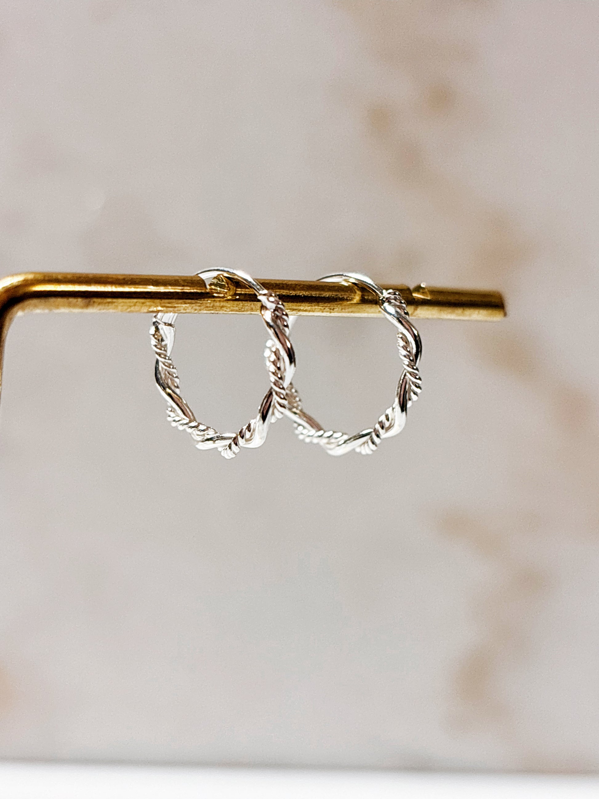 Aros argolla en plata 925 con diseño trenzado: una fusión perfecta de textura y brillo, ideales para un look sofisticado con un toque artesanal.