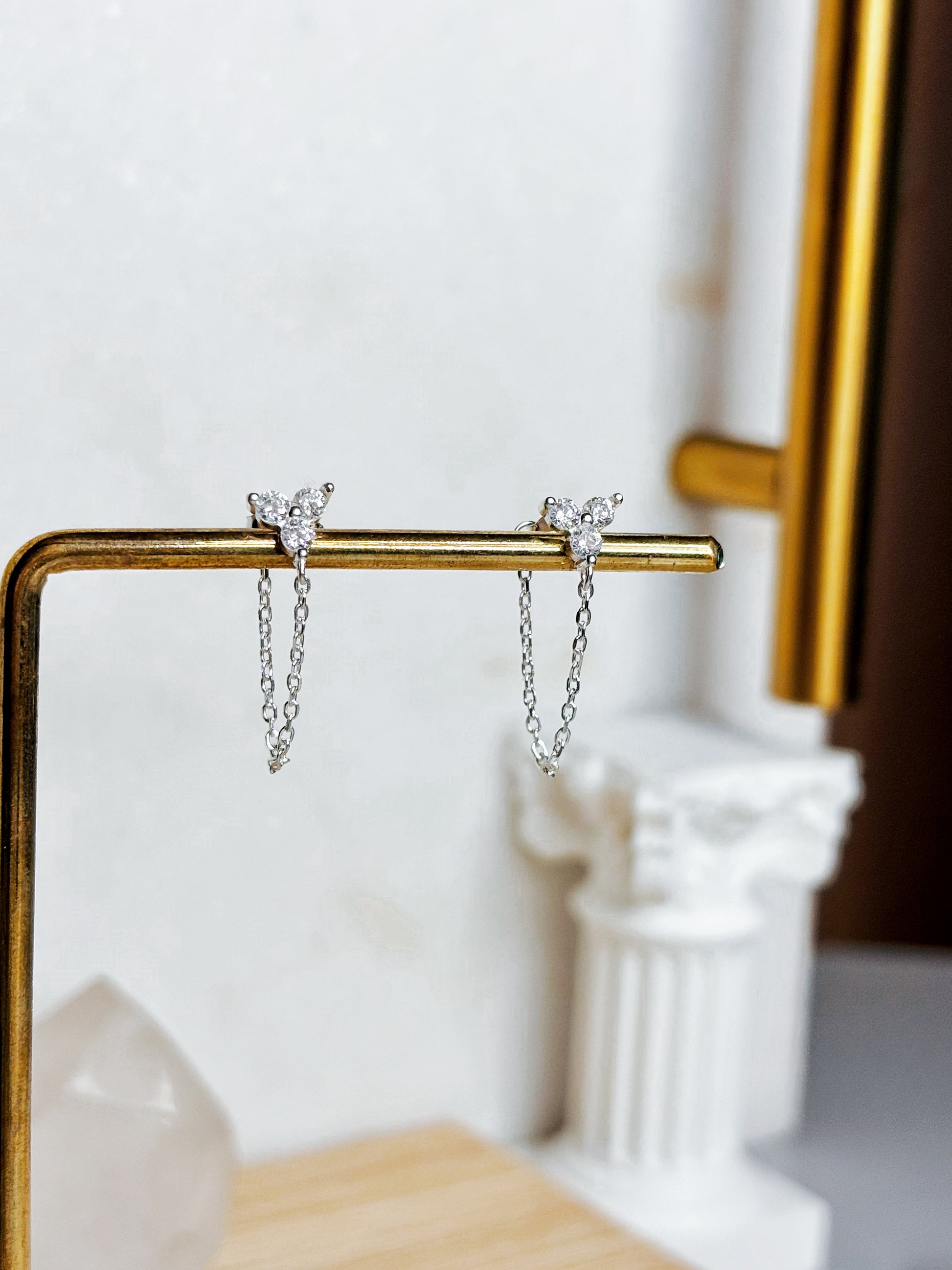 Modernos y elegantes, estos aros combinan el brillo del circón con el movimiento sutil de la cadena, creando un diseño versátil y sofisticado.