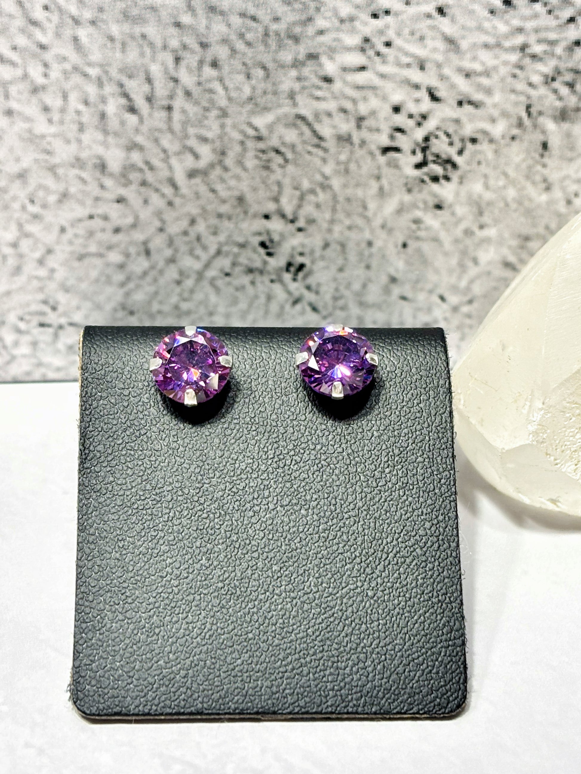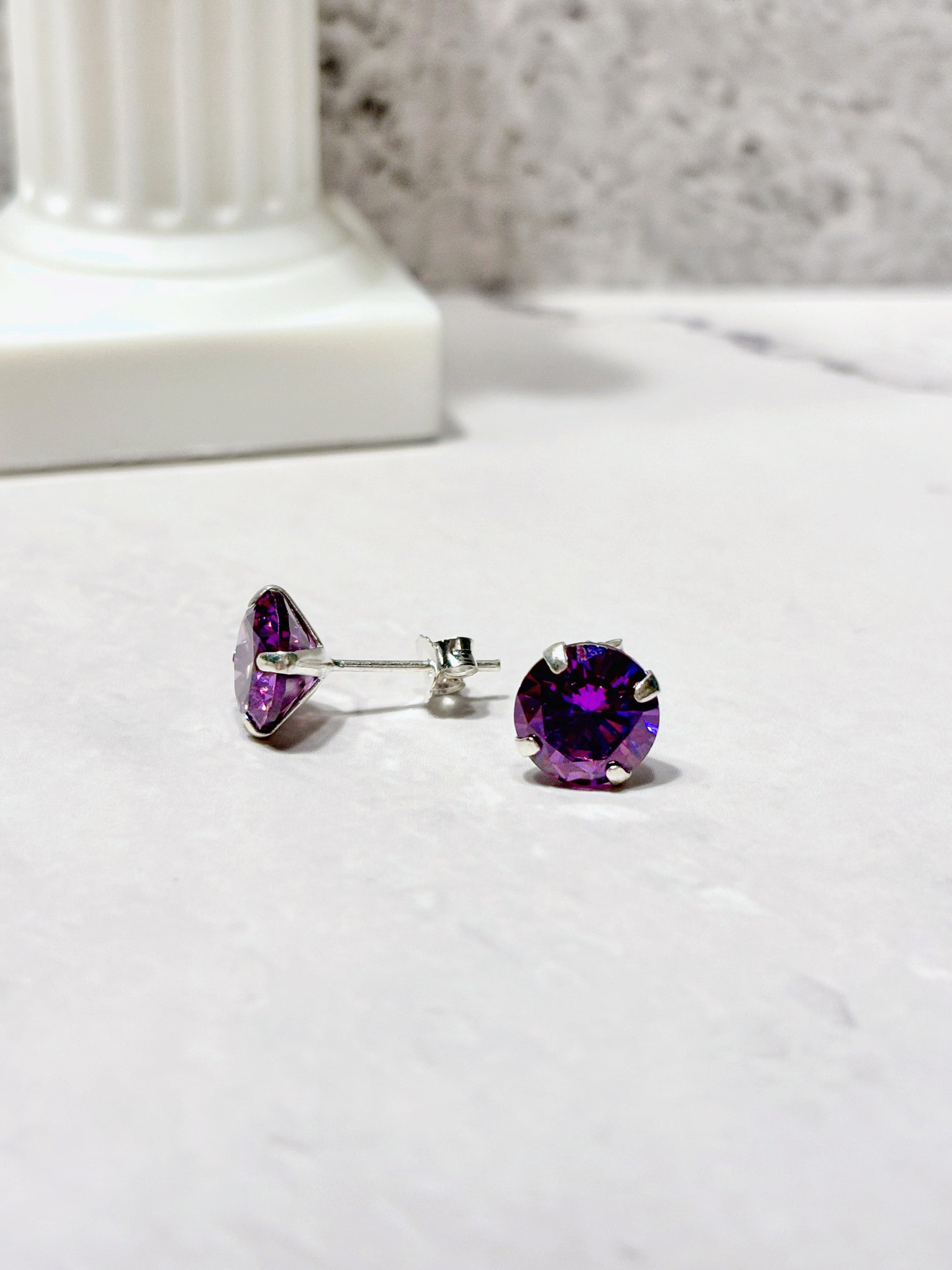 Elegancia sutil con un toque de color. Estos aros en plata 925 destacan por su brillo delicado y un circón morado que aporta luz, personalidad y un estilo femenino atemporal.