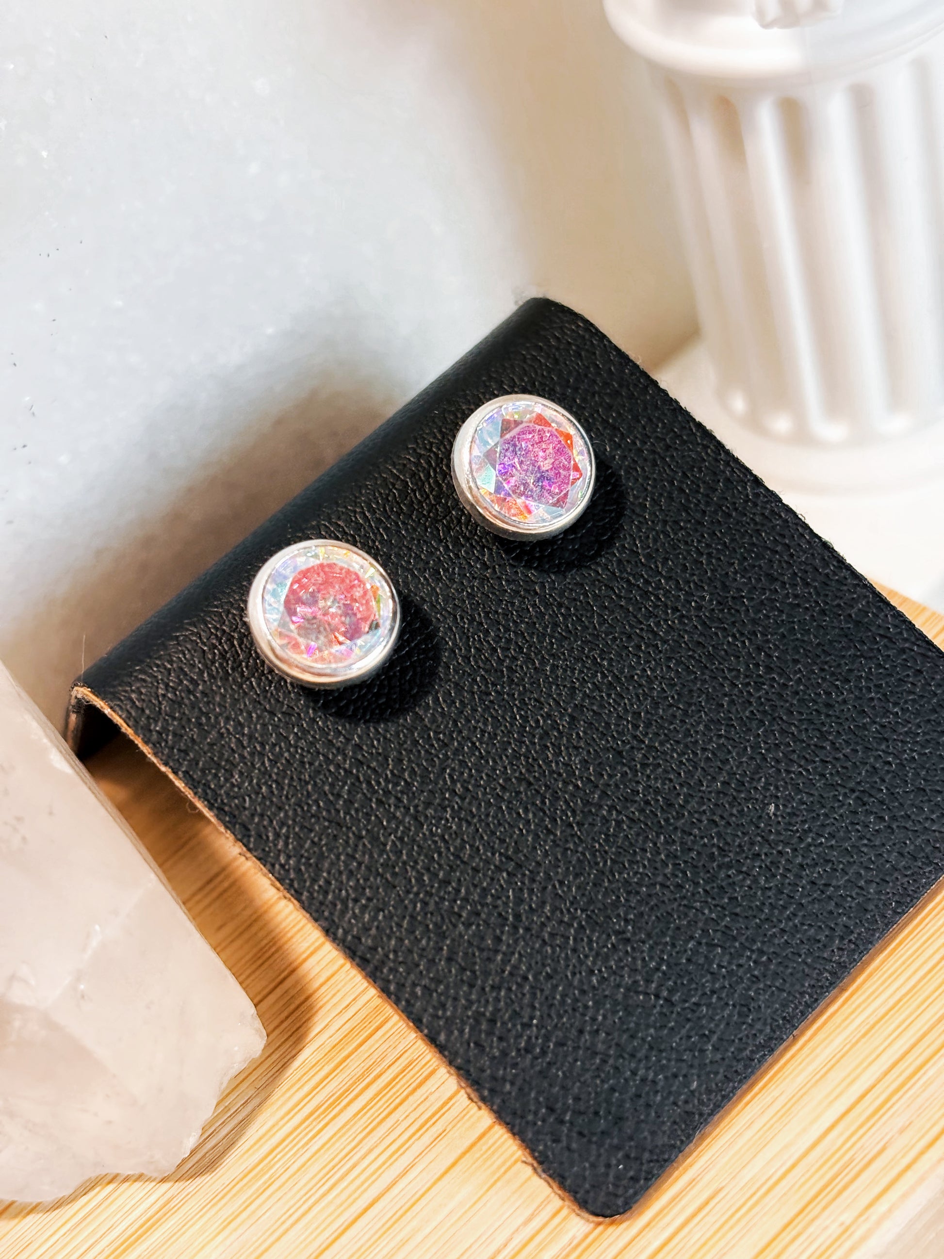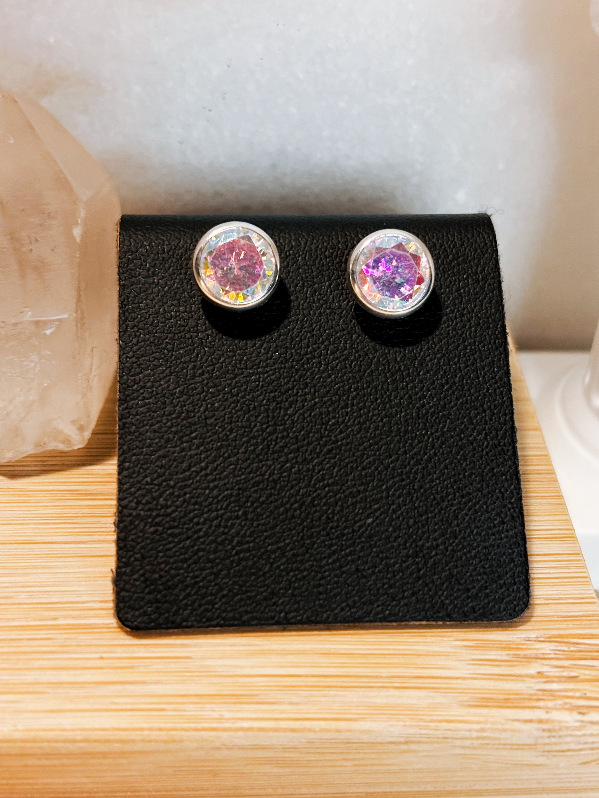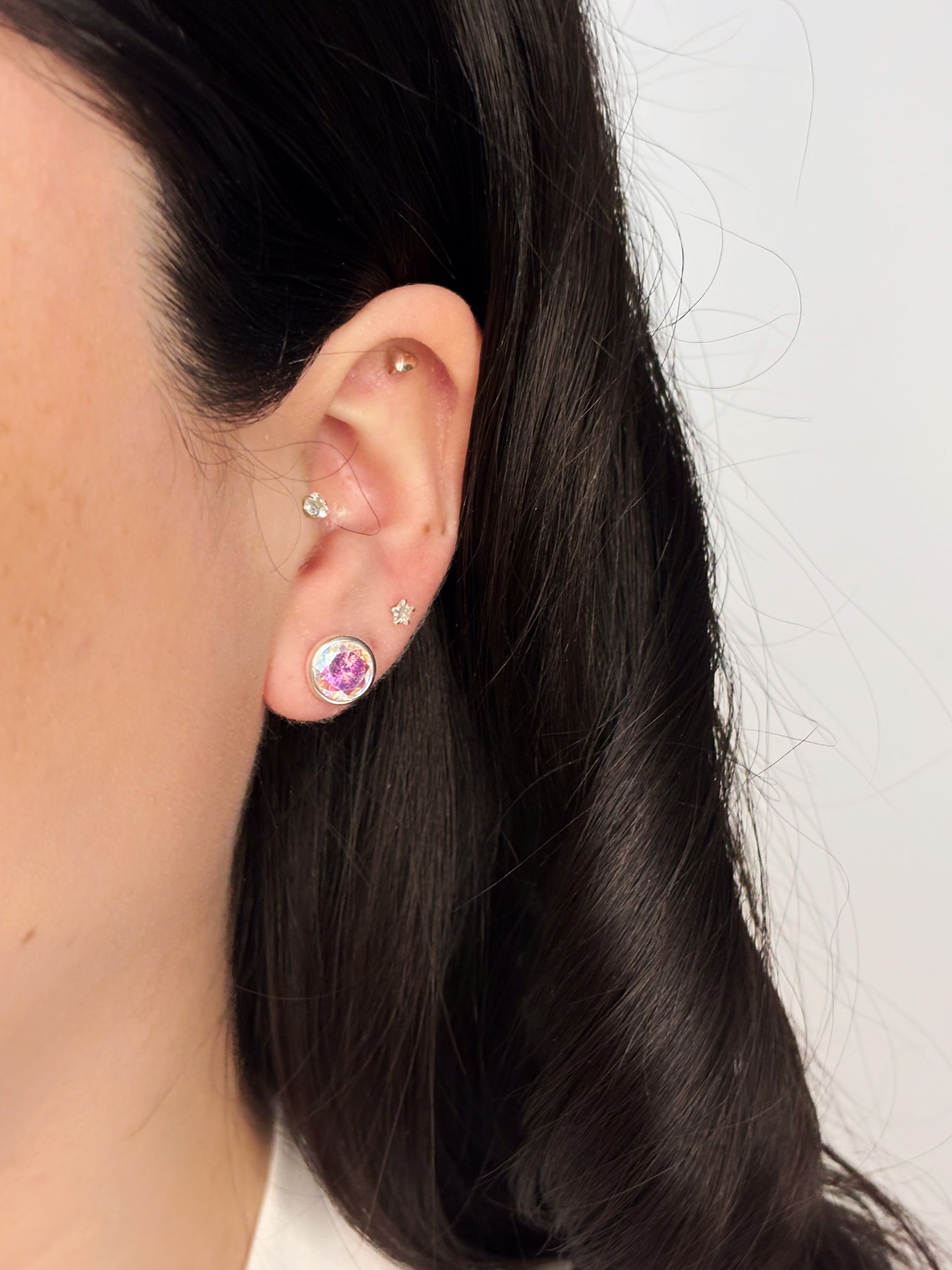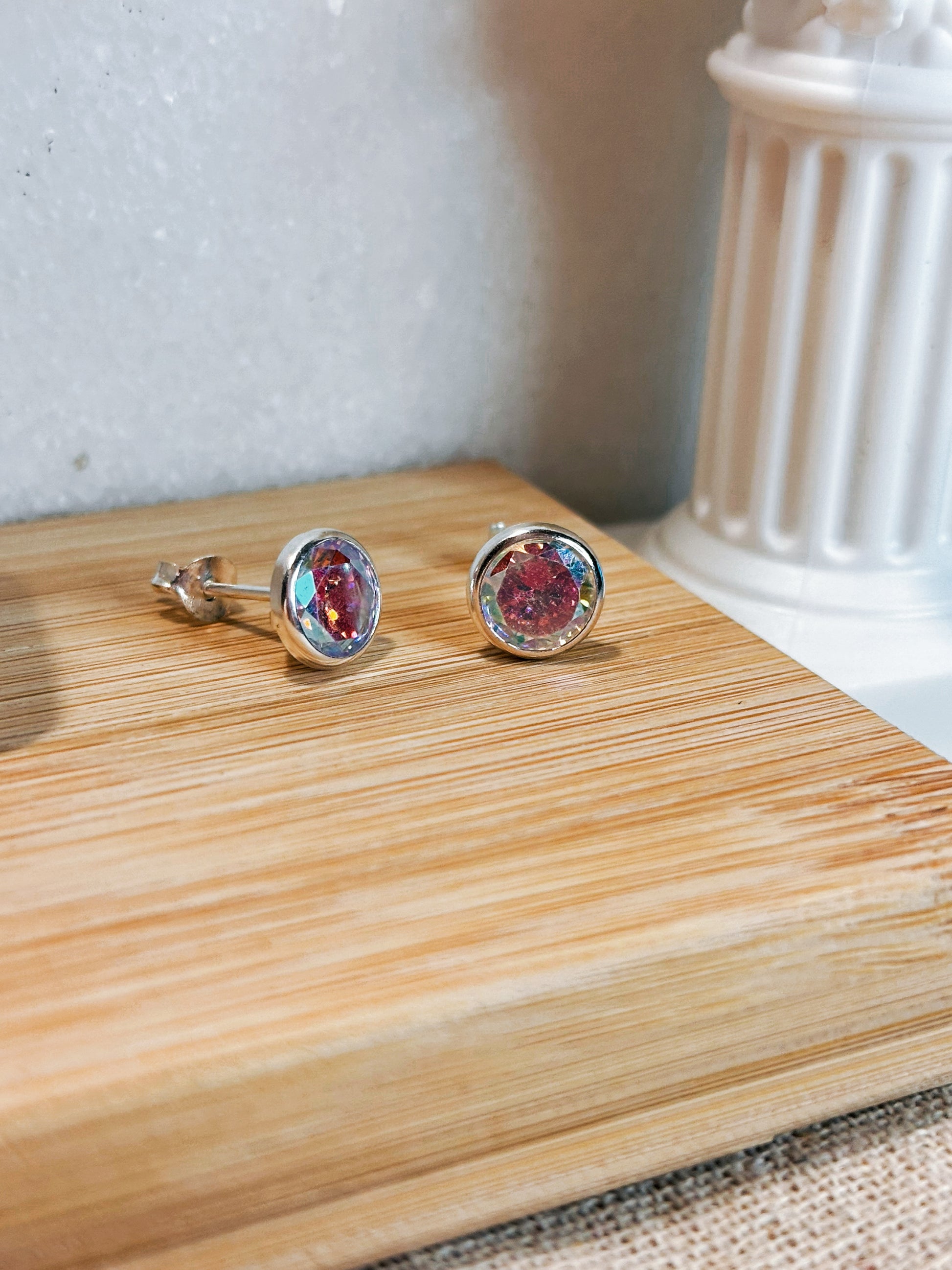 Elegantes y llamativos, estos aros destacan por el brillo multicolor del circón tornasol, aportando un toque de luz y sofisticación a cualquier look.