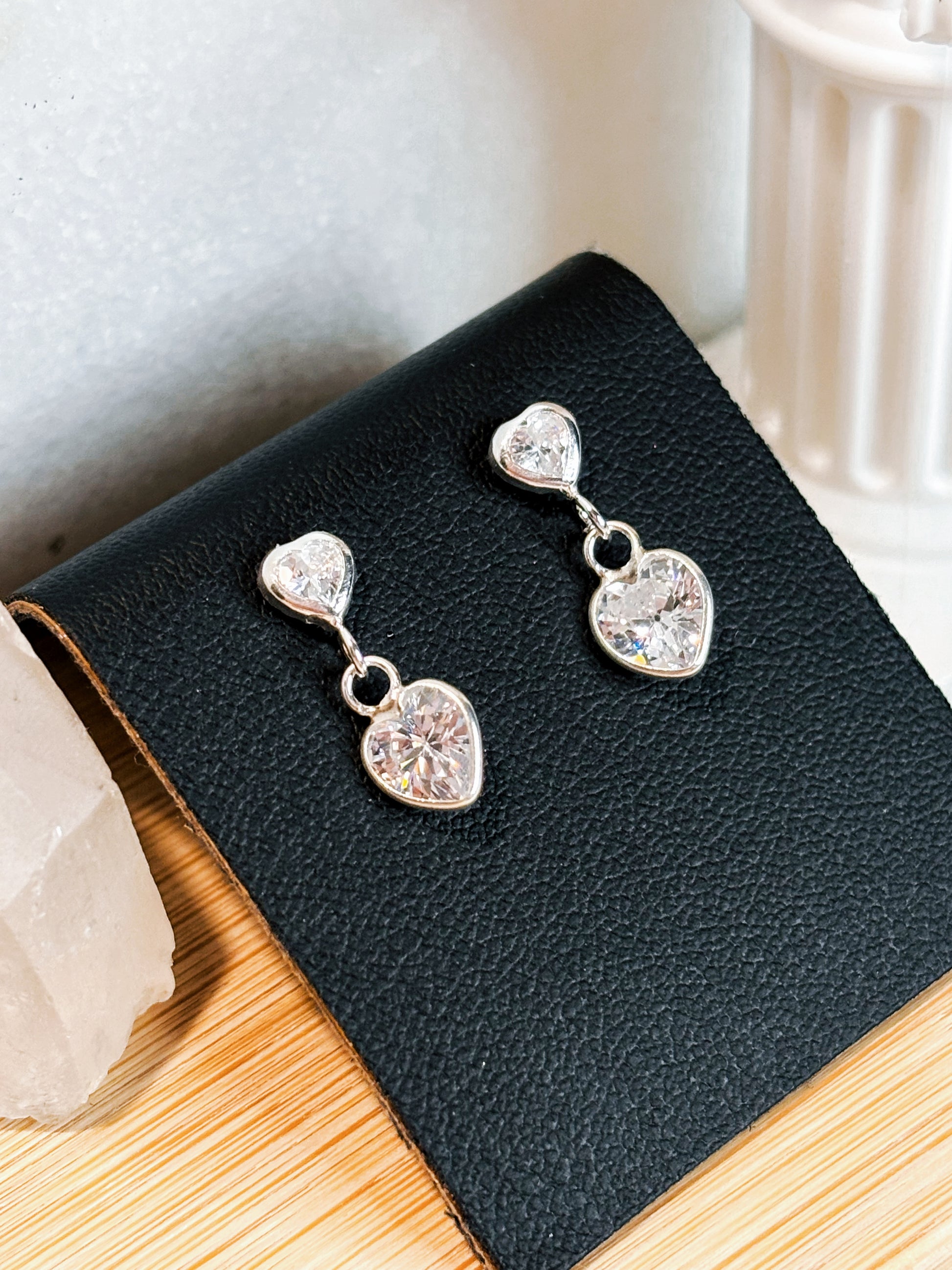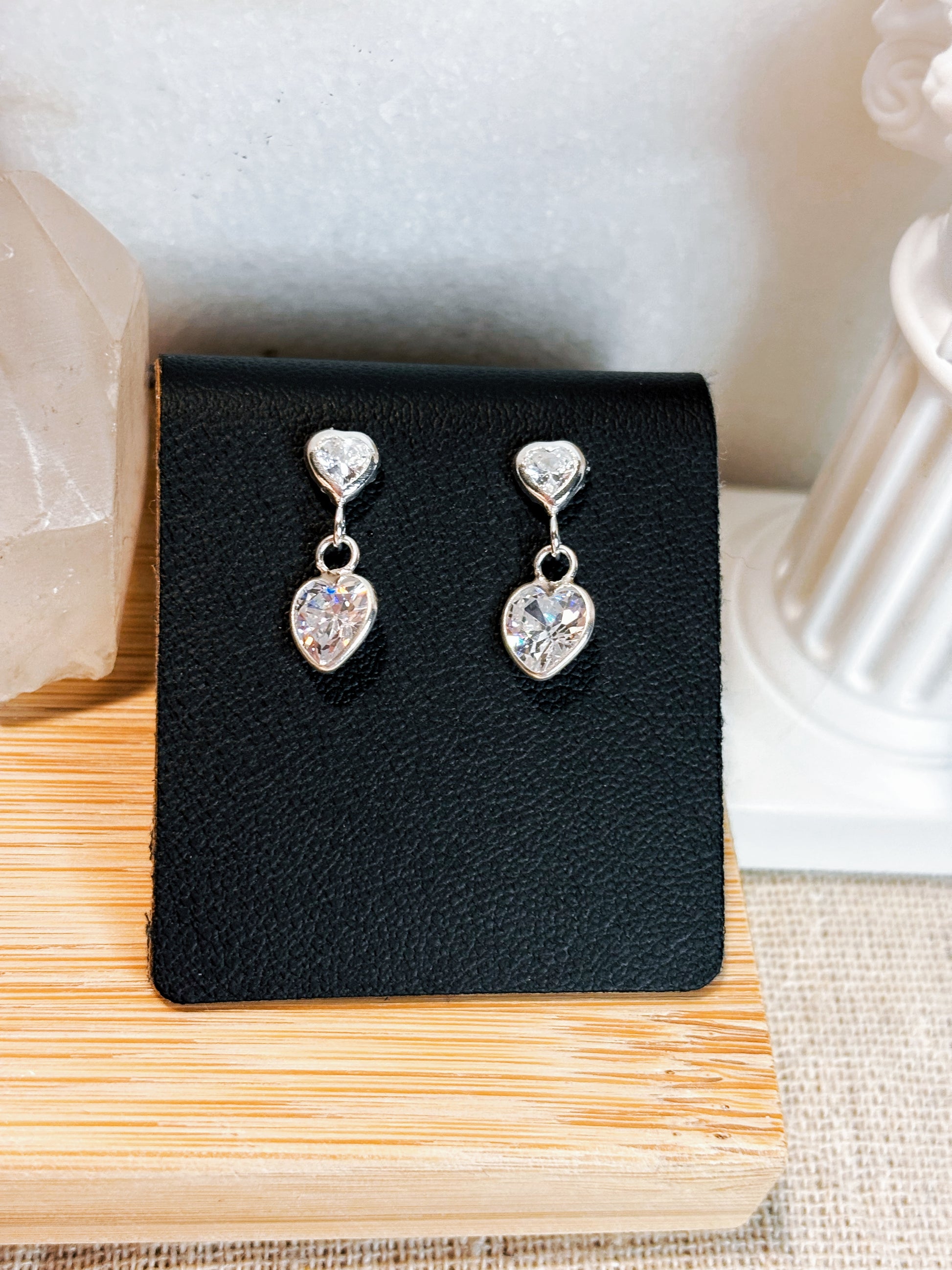 Aros de Plata 925 con Doble Corazón de Circón 💖
