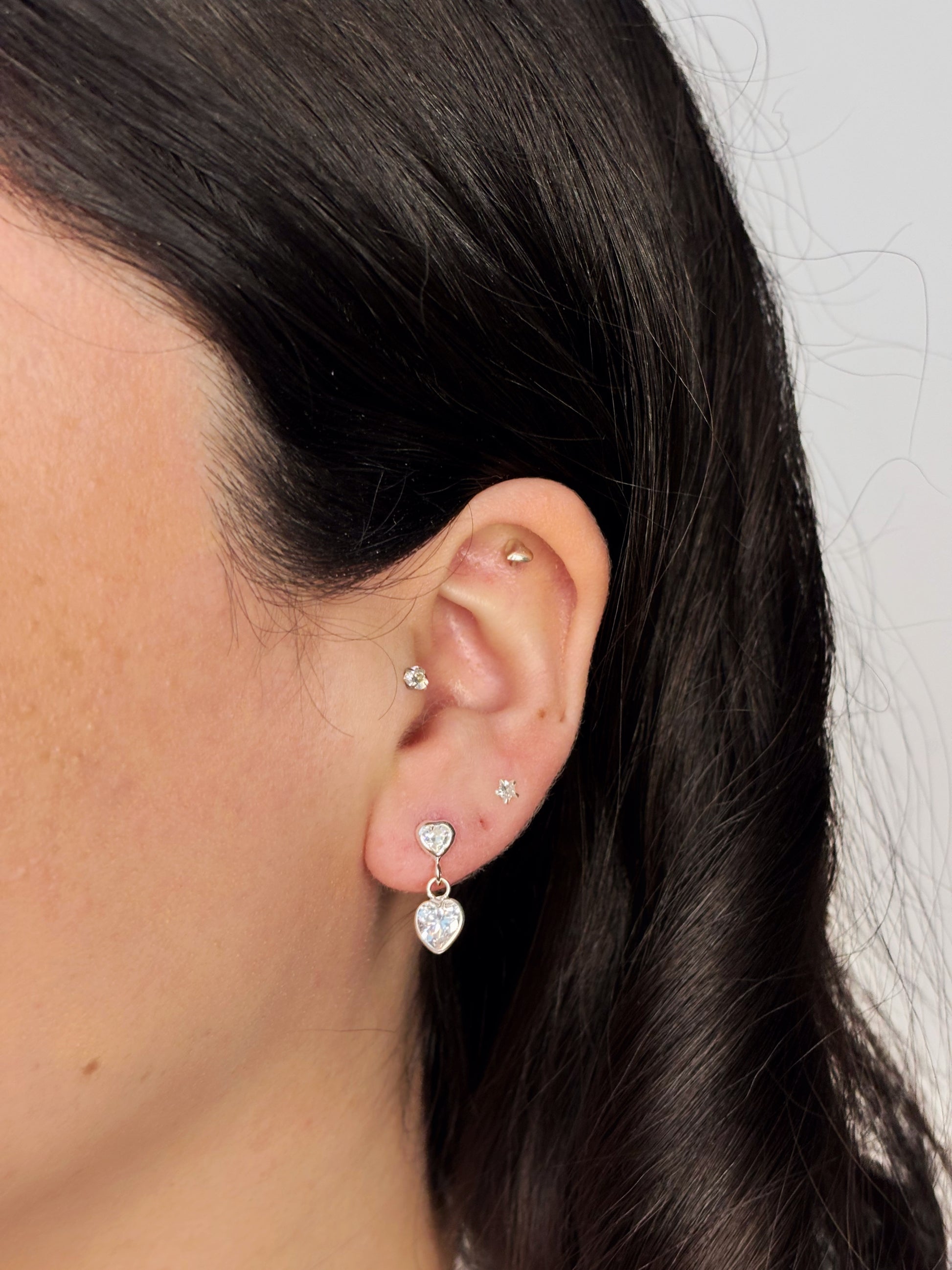 Románticos y brillantes, estos aros combinan delicadamente dos corazones en circón, creando un diseño lleno de ternura y elegancia.