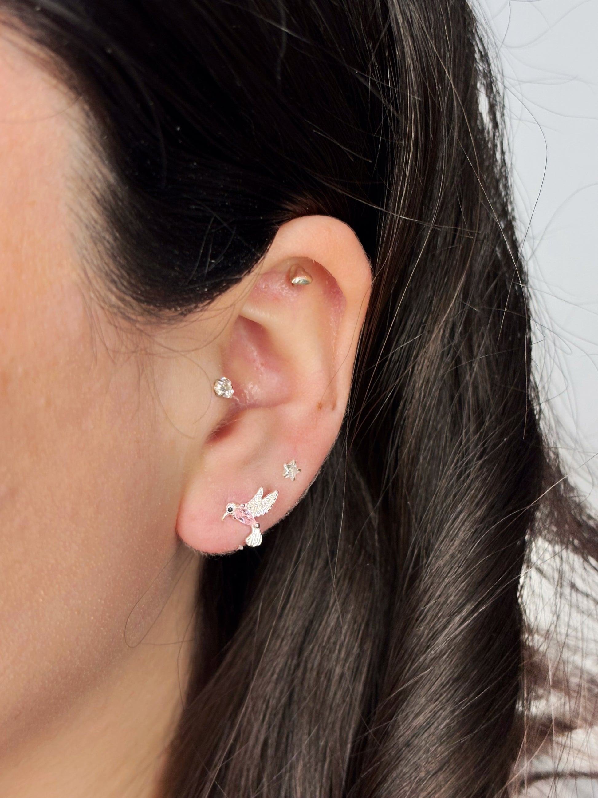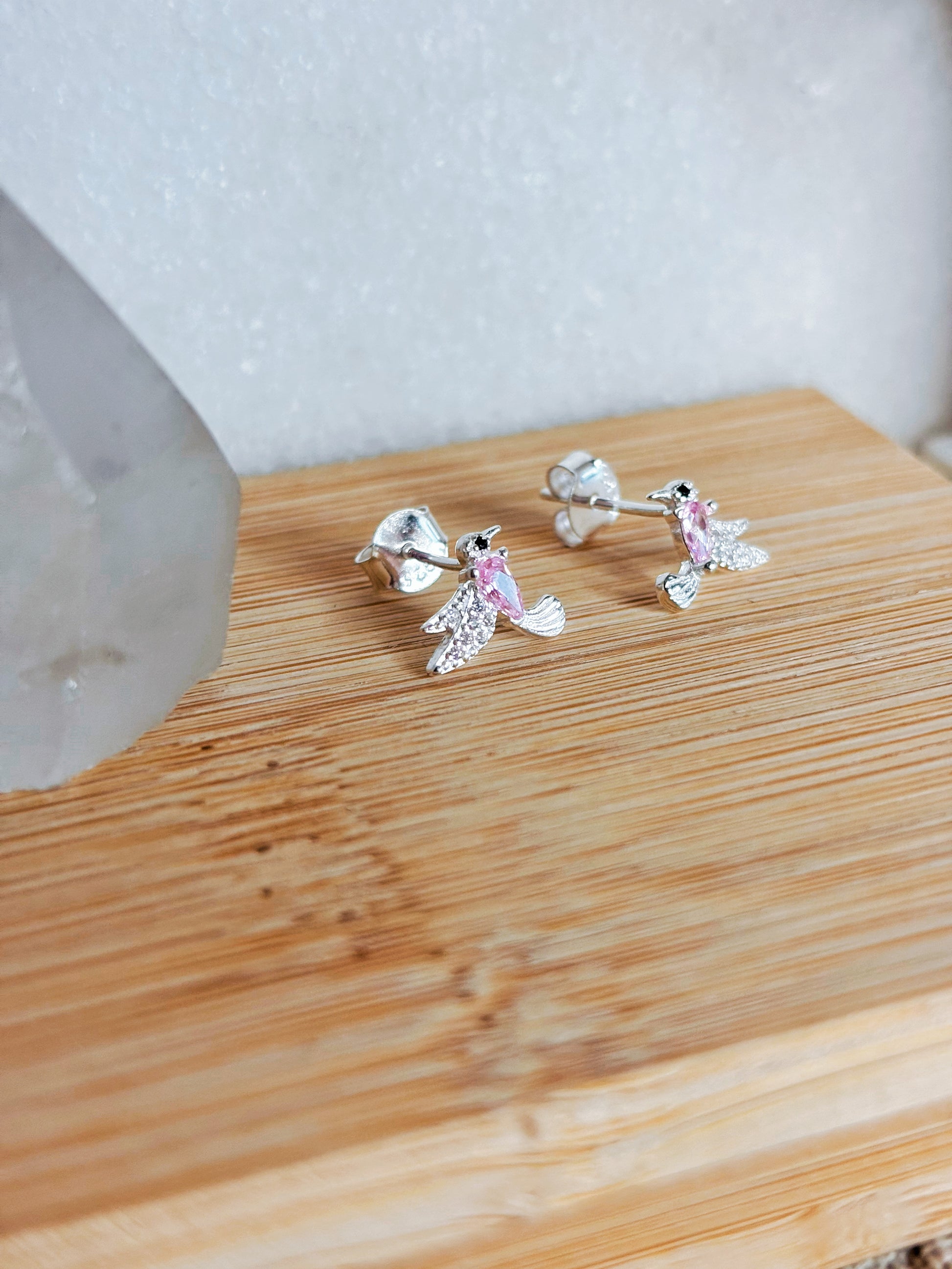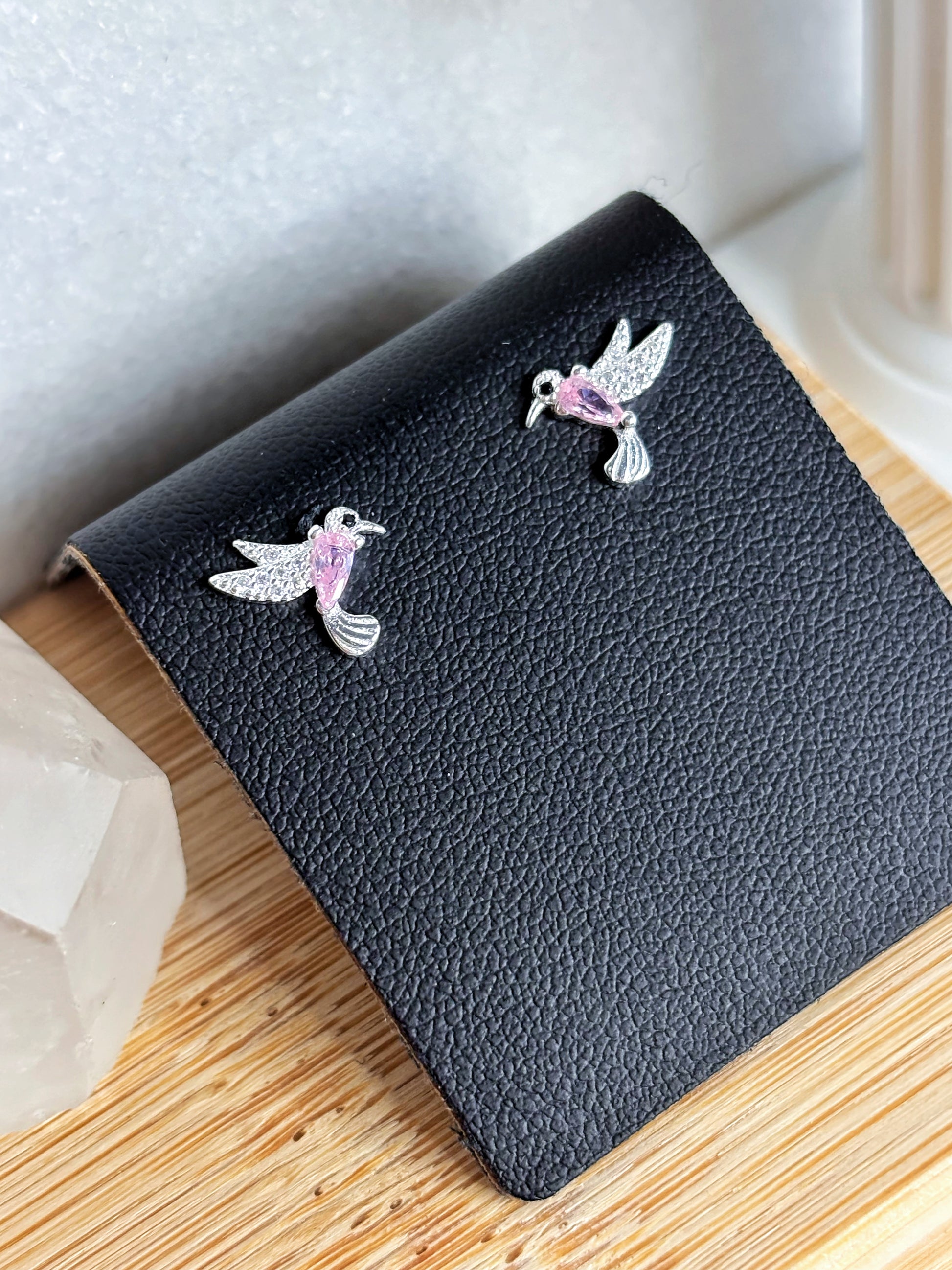 Aros Colibrí de Plata 925 con Circón Rosa y Blanco ✨