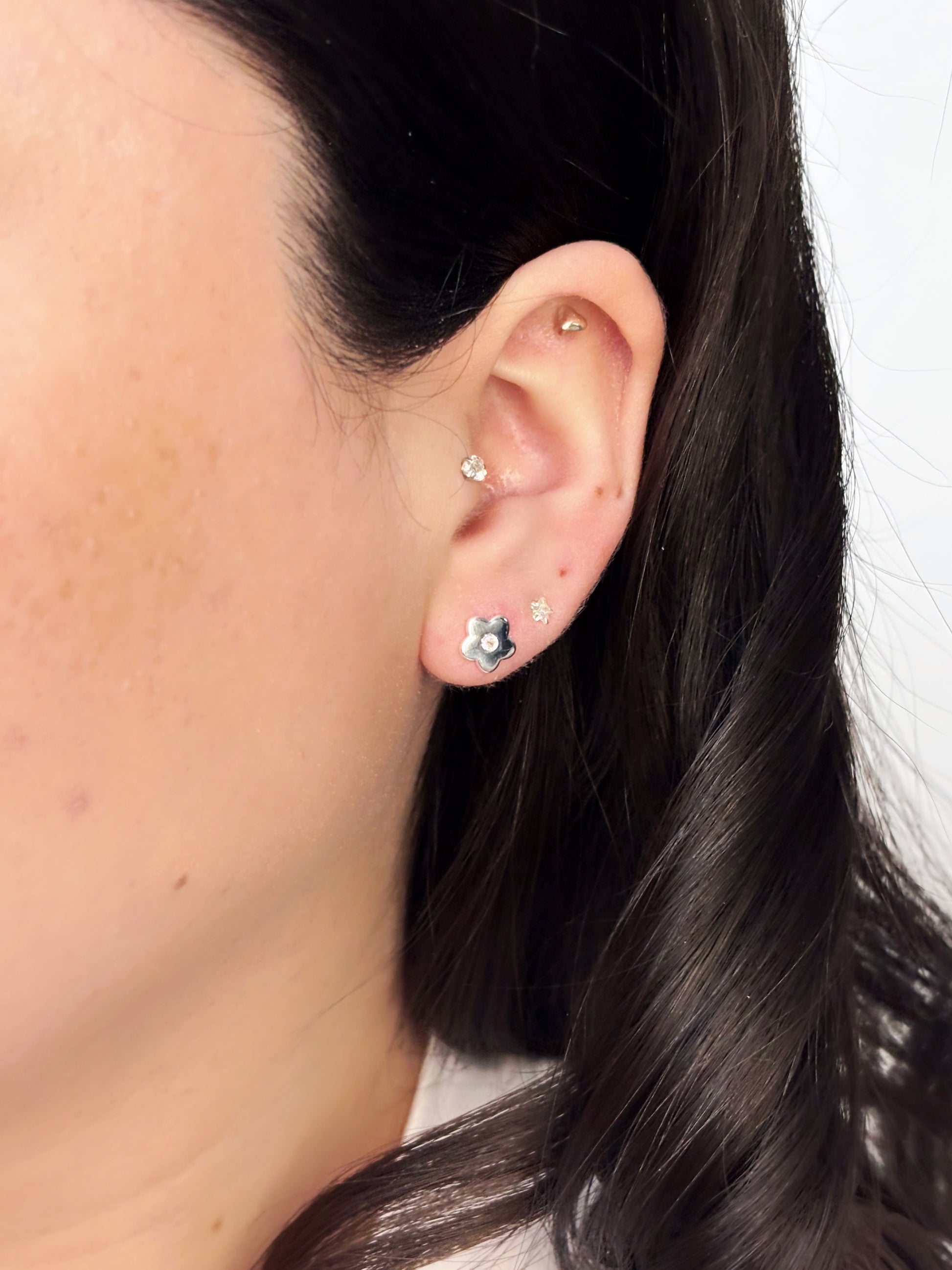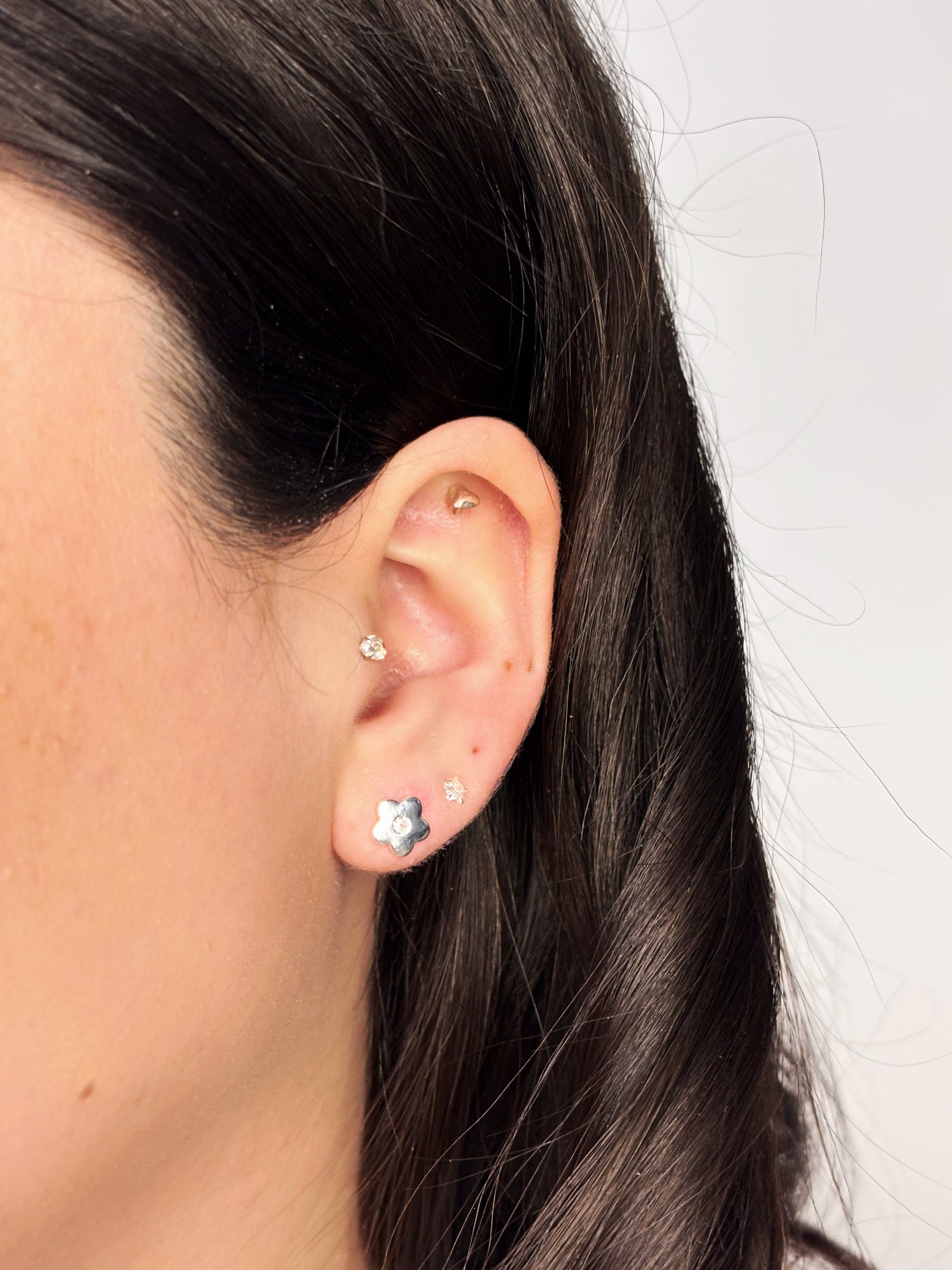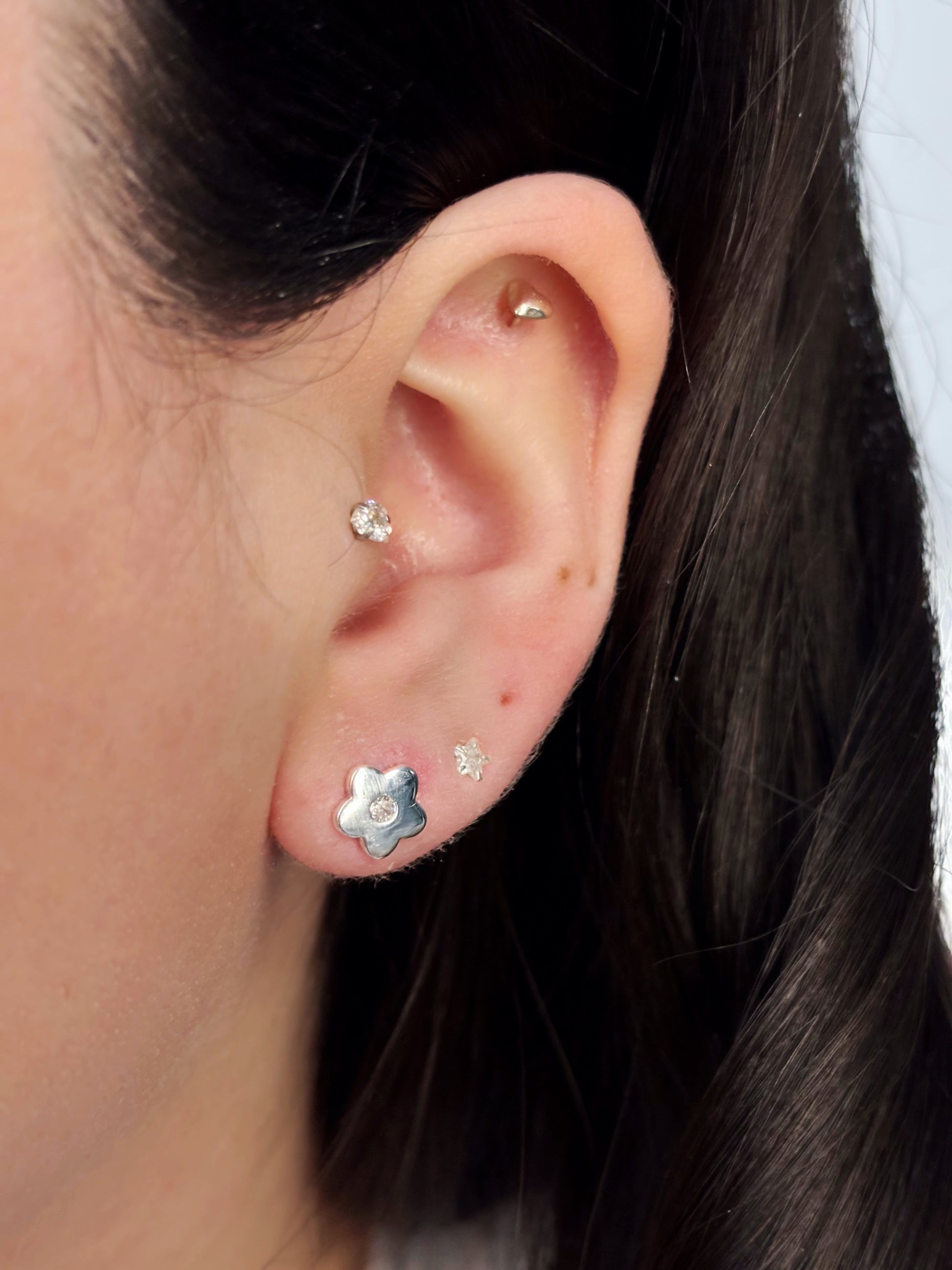 Delicados y brillantes, estos aros en forma de flor destacan por su diseño femenino y el resplandor del circón, montados en plata de ley 925. Ideales para dar un toque de frescura y elegancia a tu look.
