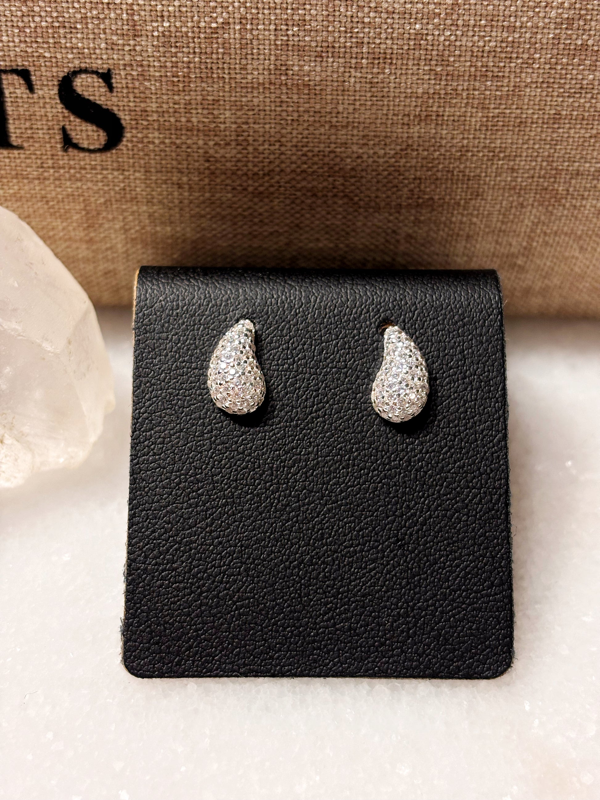Aros gota en plata 925 con circones pavé. Brillo sutil y estilo atemporal para cada ocasión.