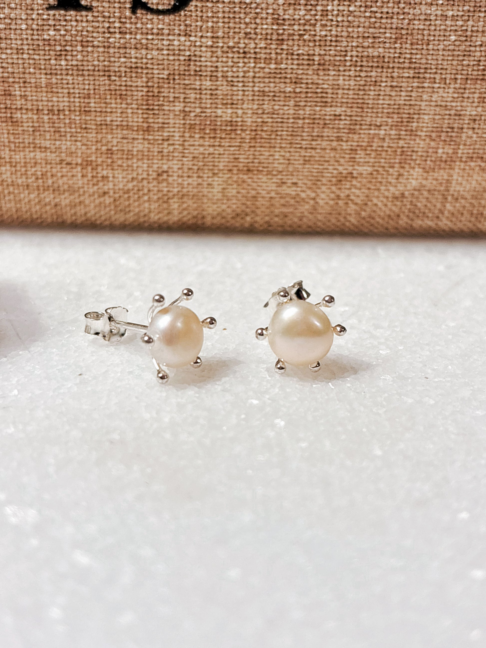 Aros en plata ley 925 con auténticas perlas de río, una combinación clásica y natural que aporta elegancia sutil y un encanto atemporal a cualquier look.