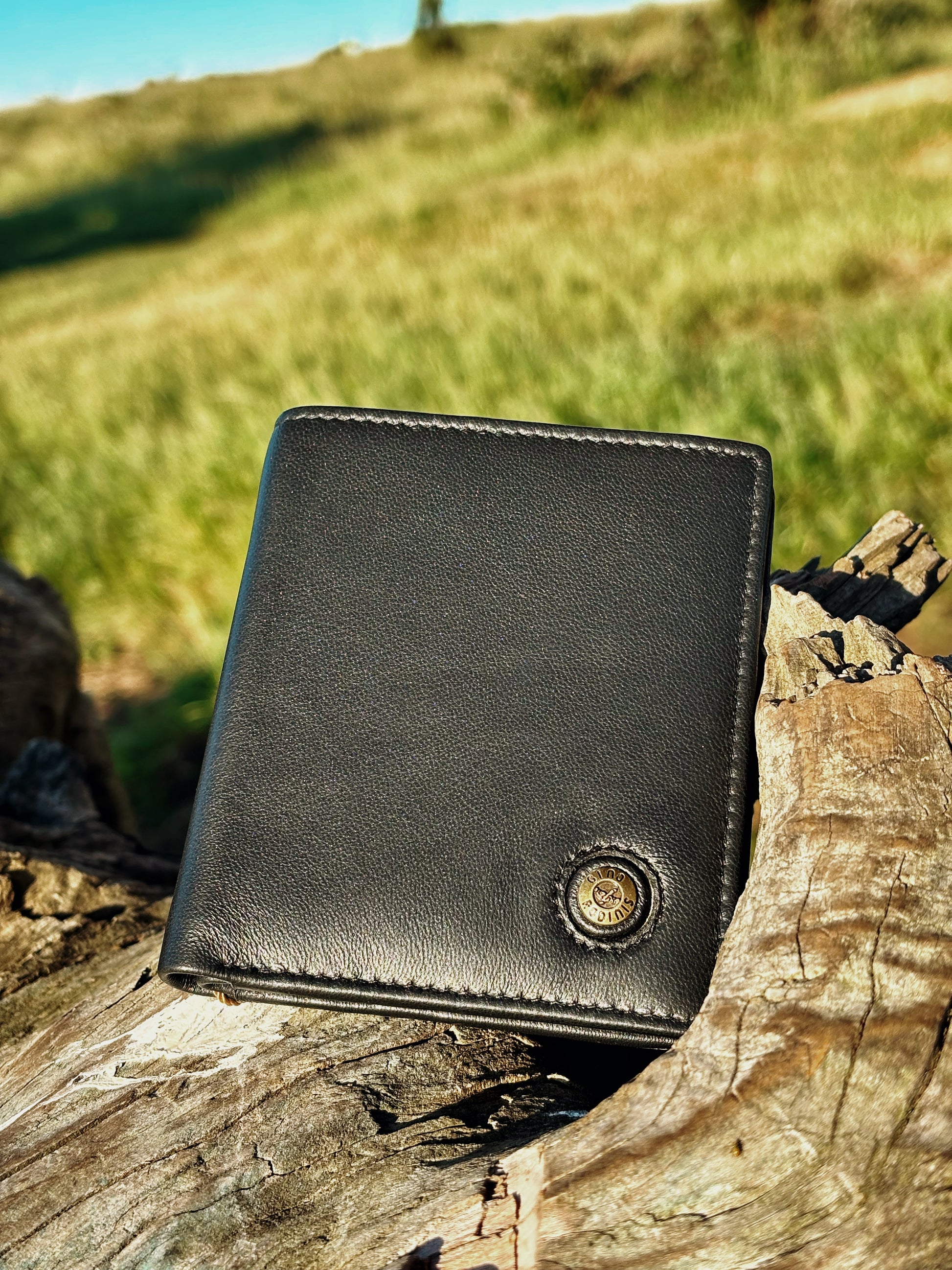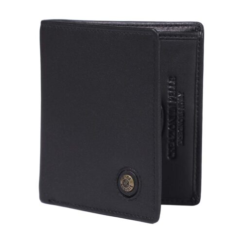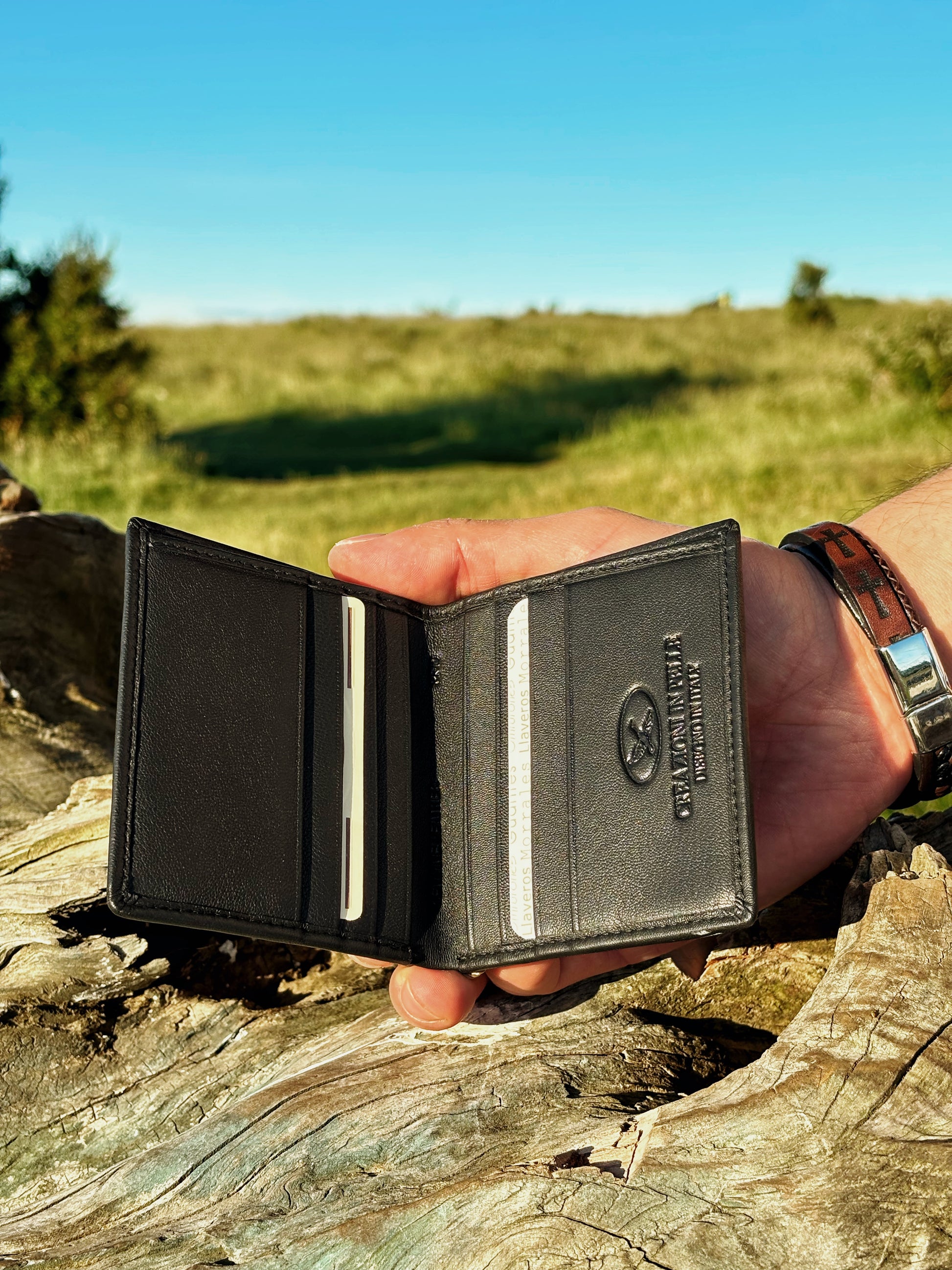 Billetera confeccionada en cuero natural, con pequeño logo metálico en la tapa y protección RFID para evitar la clonación de tarjetas. Cuenta con 6 compartimientos para tarjetas, 2 bolsillos interiores planos y un bolsillo especial para billetes. Su interior incorpora tela repelente al agua con logo bordado.
