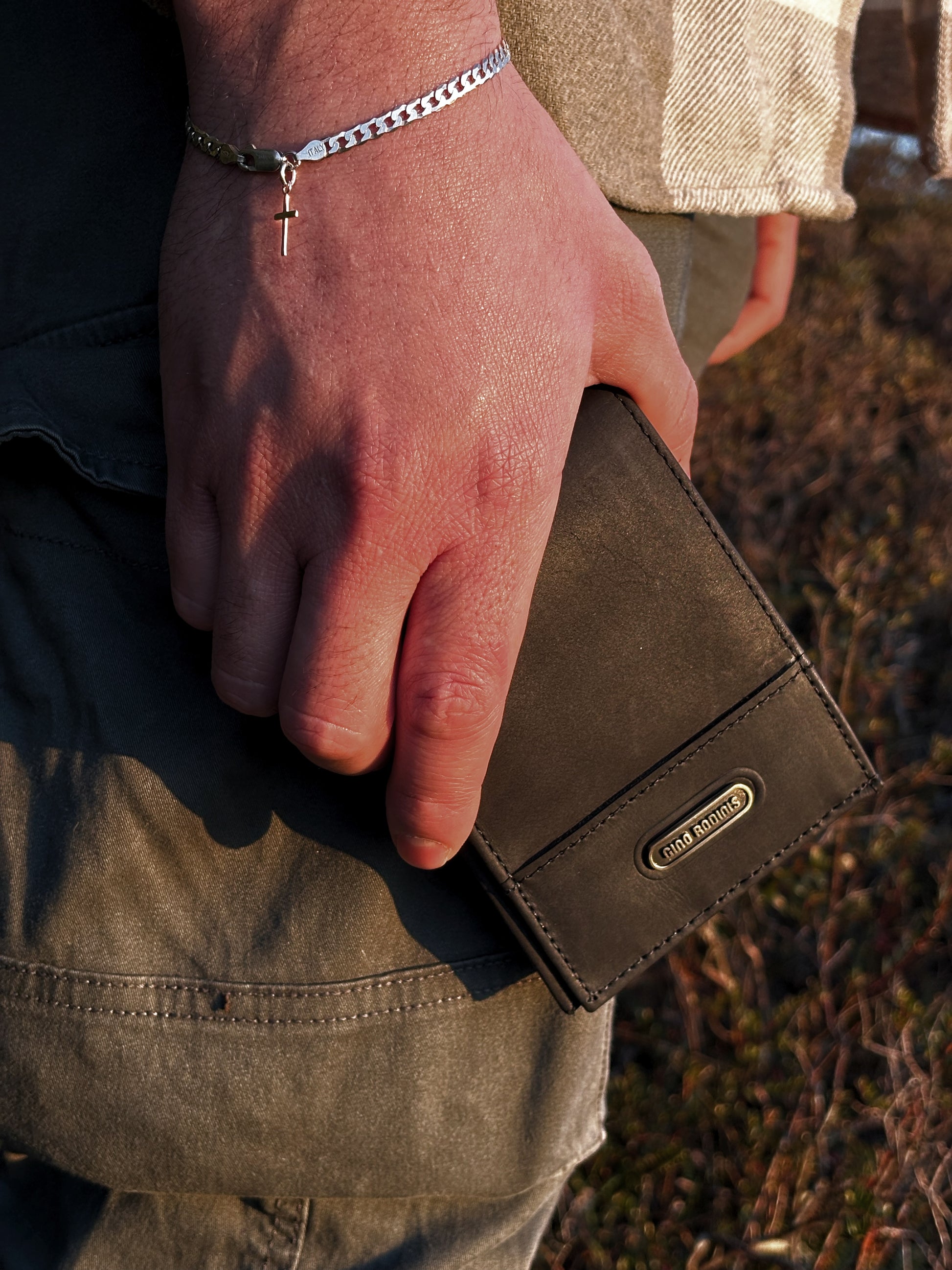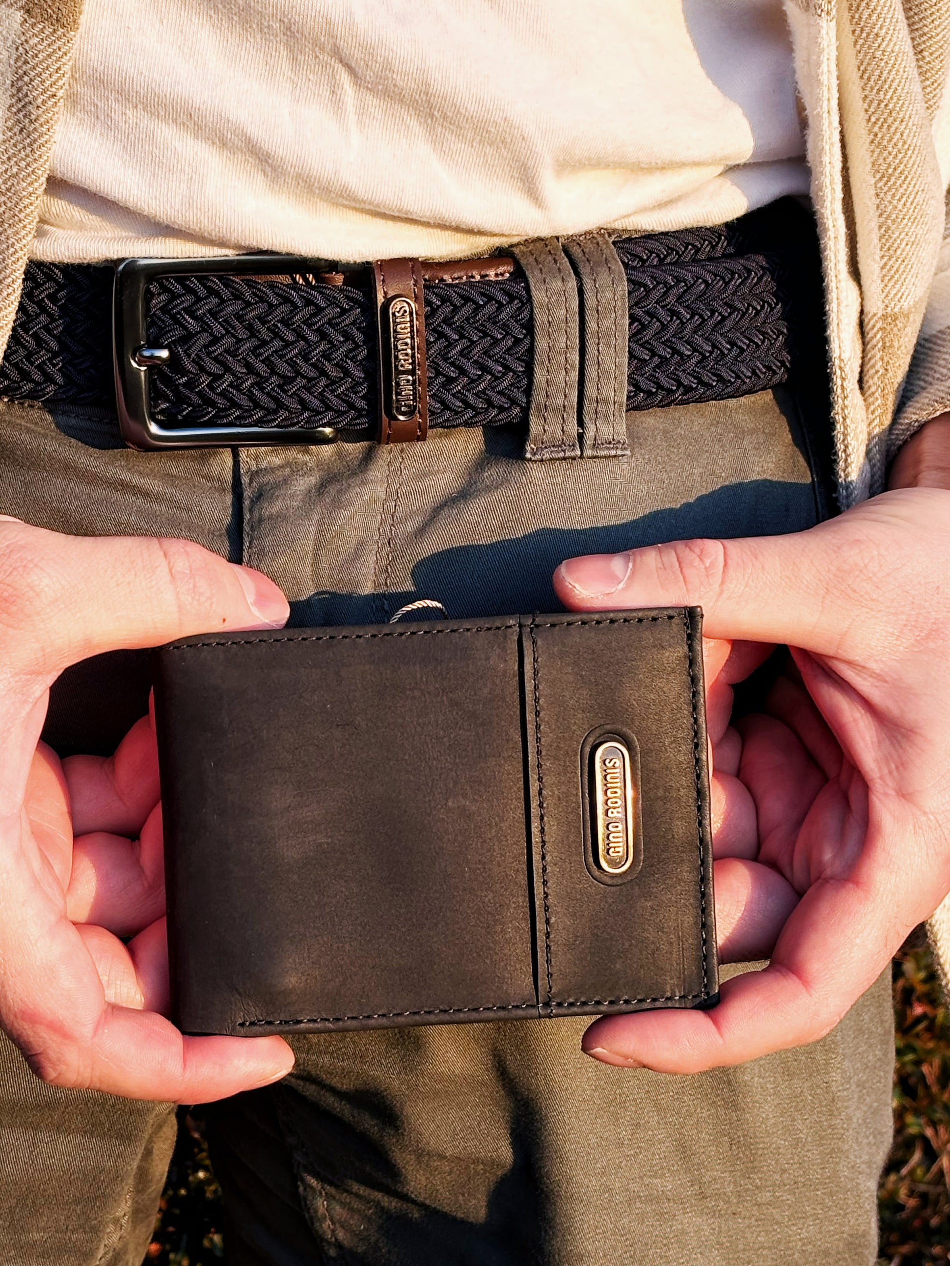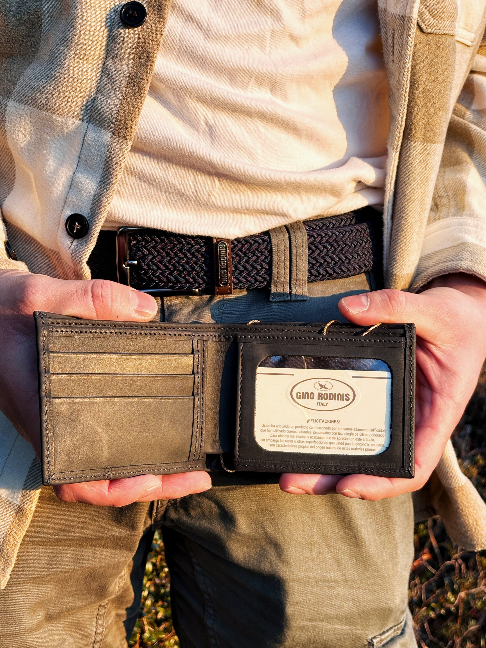 Confeccionada en cuero graso de alta calidad, esta billetera ofrece durabilidad y un estilo atemporal. Su interior cuenta con 3 compartimientos para tarjetas de crédito, 3 divisiones independientes (una de ellas con mica) y un espacio doble para billetes.