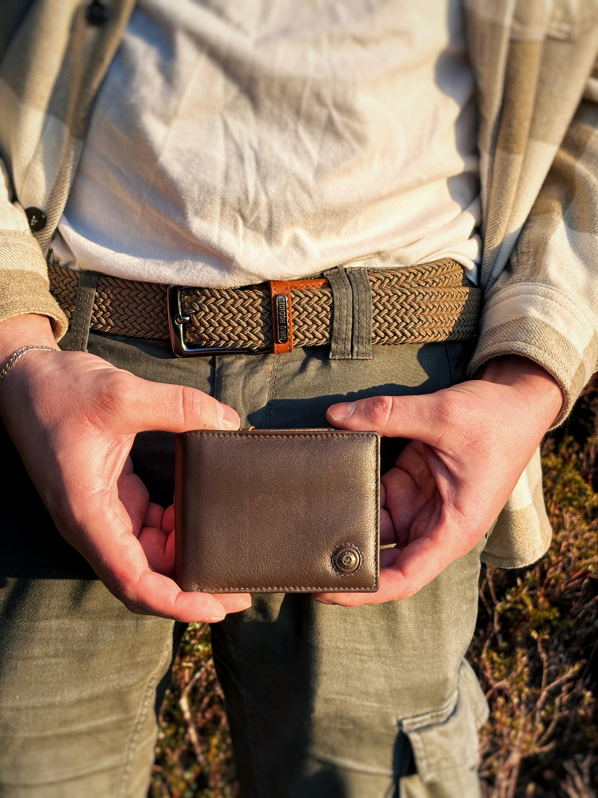 Elegante y funcional, esta billetera está confeccionada 100% en cuero de alta calidad e incorpora tecnología RFID para proteger tus tarjetas contra la clonación.