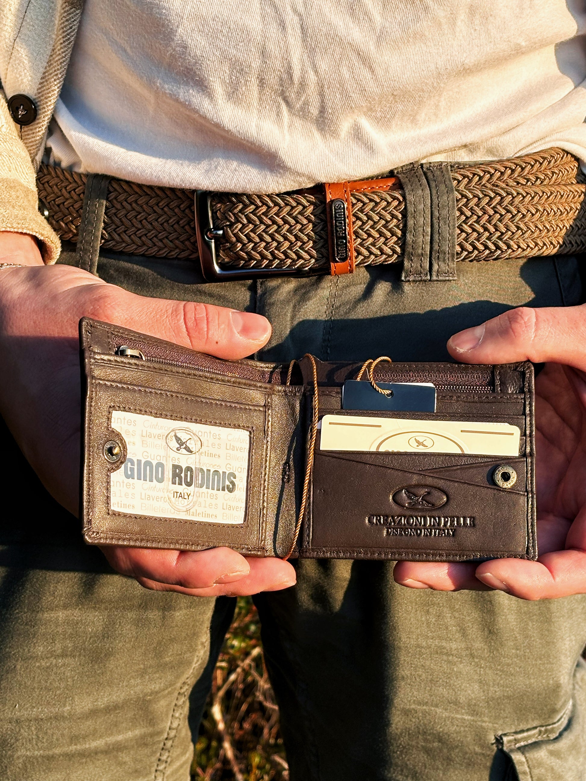 BILLETERA DE CUERO CON BOLSILLO INTERIOR CON CIERRE