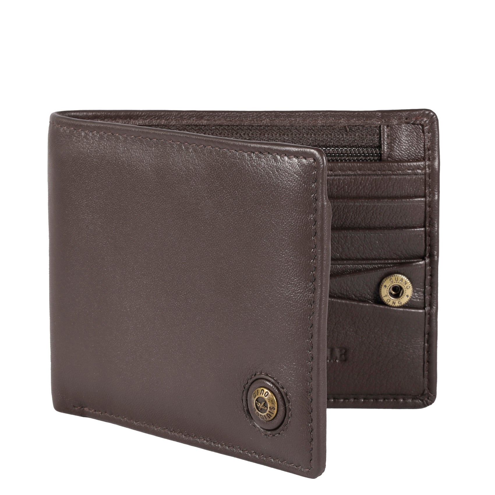 Su diseño incluye un pequeño logo metálico en la tapa y cierre con broche de presión para mayor seguridad. Dispone de 3 compartimientos para tarjetas, un bolsillo con mica (portafotos), 2 bolsillos planos interiores, un amplio bolsillo con cierre y un compartimiento especial para billetes.