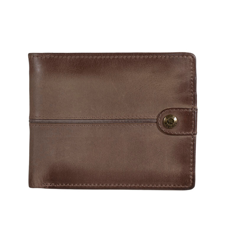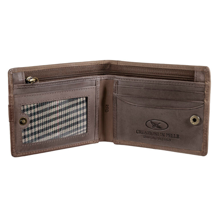 Billetera de cuero graso con cierre a presión y tecnología RFID