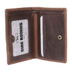 Billetera confeccionada en cuero graso con bordes pulidos y tapa con logo metálico. Incorpora tecnología RFID para proteger tus tarjetas. Diseño vertical con broche de presión, 3 compartimientos para tarjetas, portafotos con mica, una división interior y bolsillo doble para billetes. Su interior presenta tela cuadrillé repelente al agua.