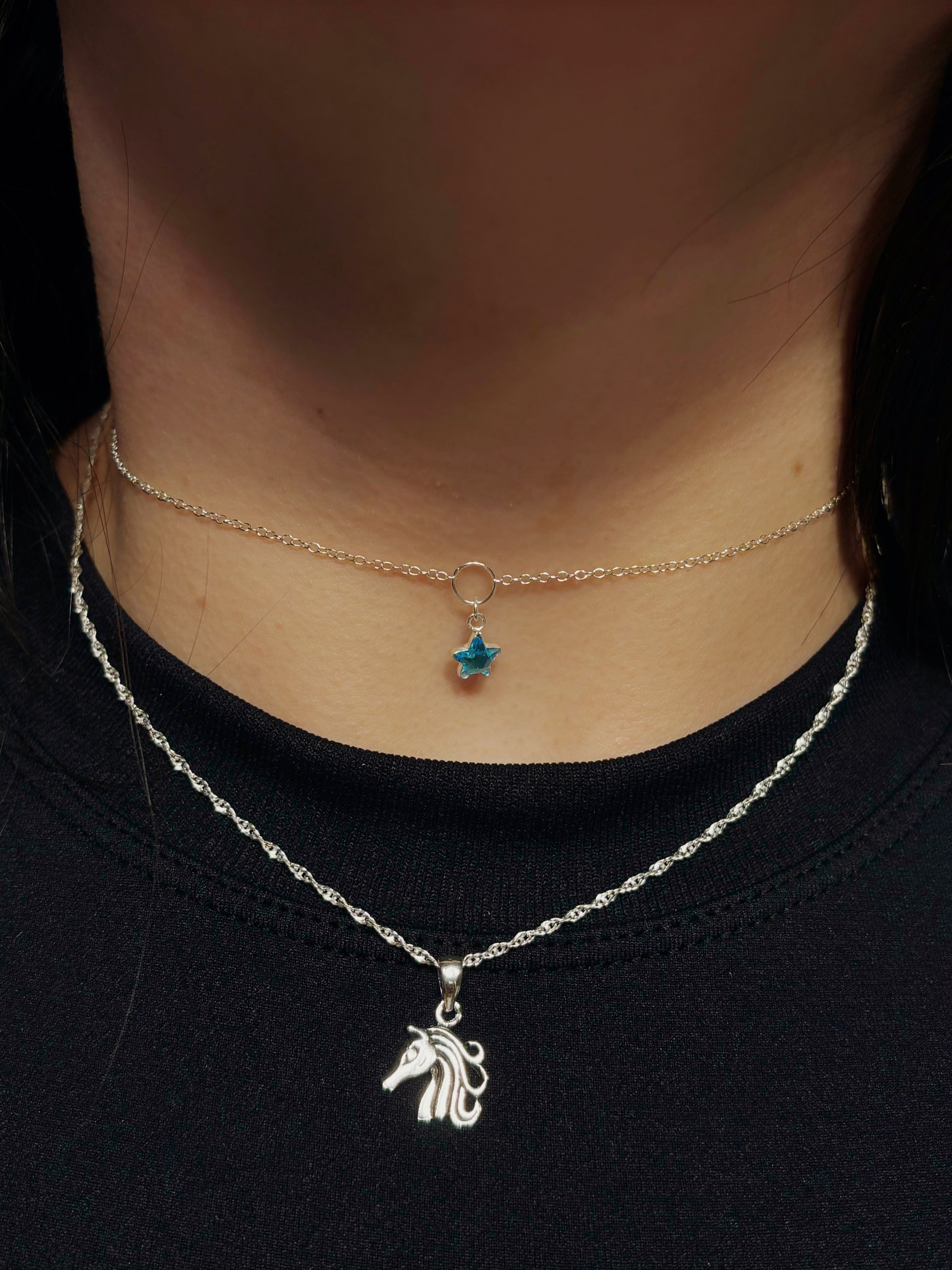 Collar choker en plata 925 con estrella y circón zafiro: un diseño delicado y luminoso, ideal para dar un toque distintivo y sutil a tu look. Perfecto para niñas o jóvenes que buscan un collar pequeño, cómodo y lleno de encanto.