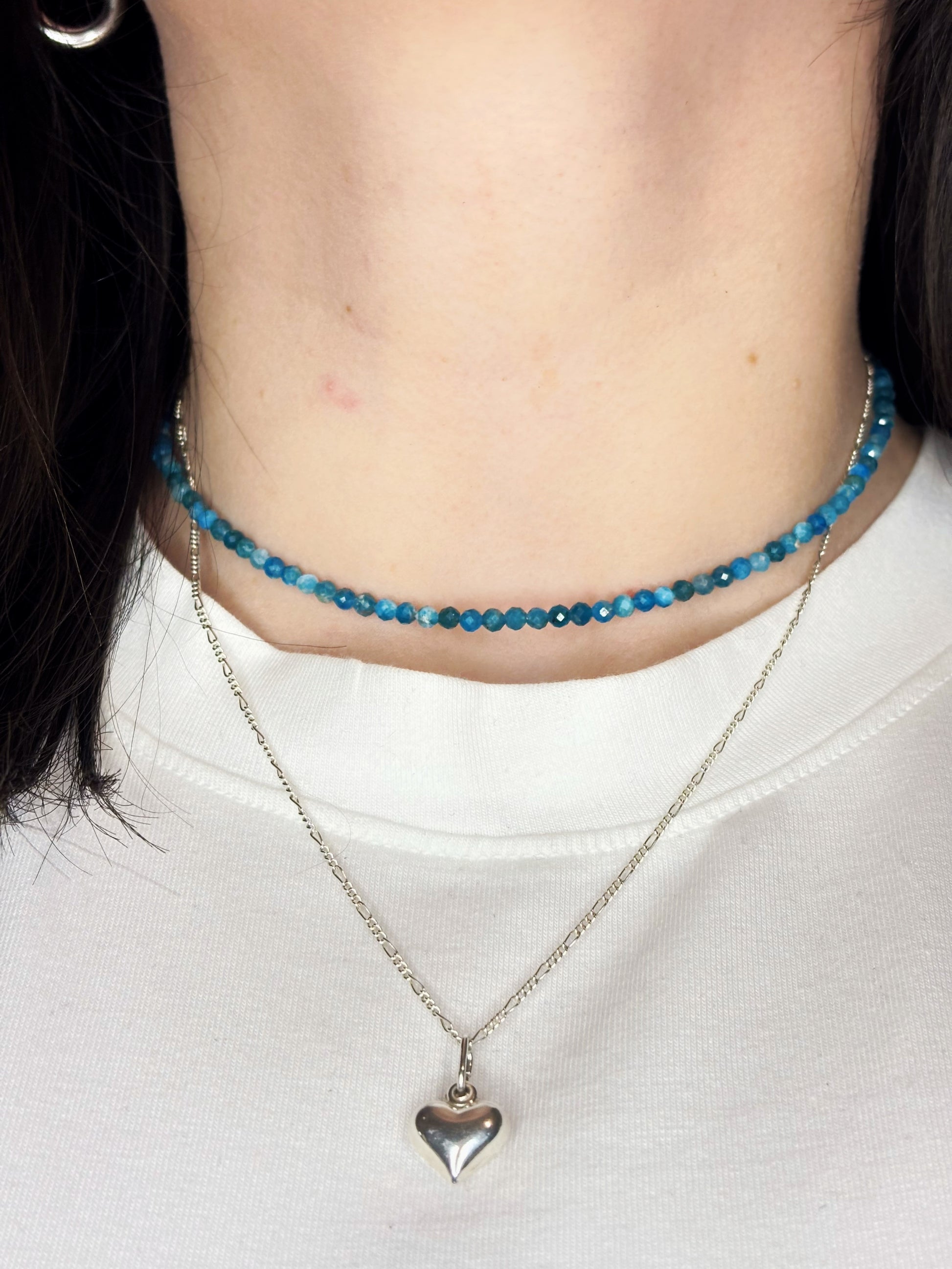 Un collar lleno de color, energía y sofisticación. Elaborado con piedras naturales amazonita, cuarzo rosado y ágata azul, cuidadosamente facetadas para resaltar su brillo único.