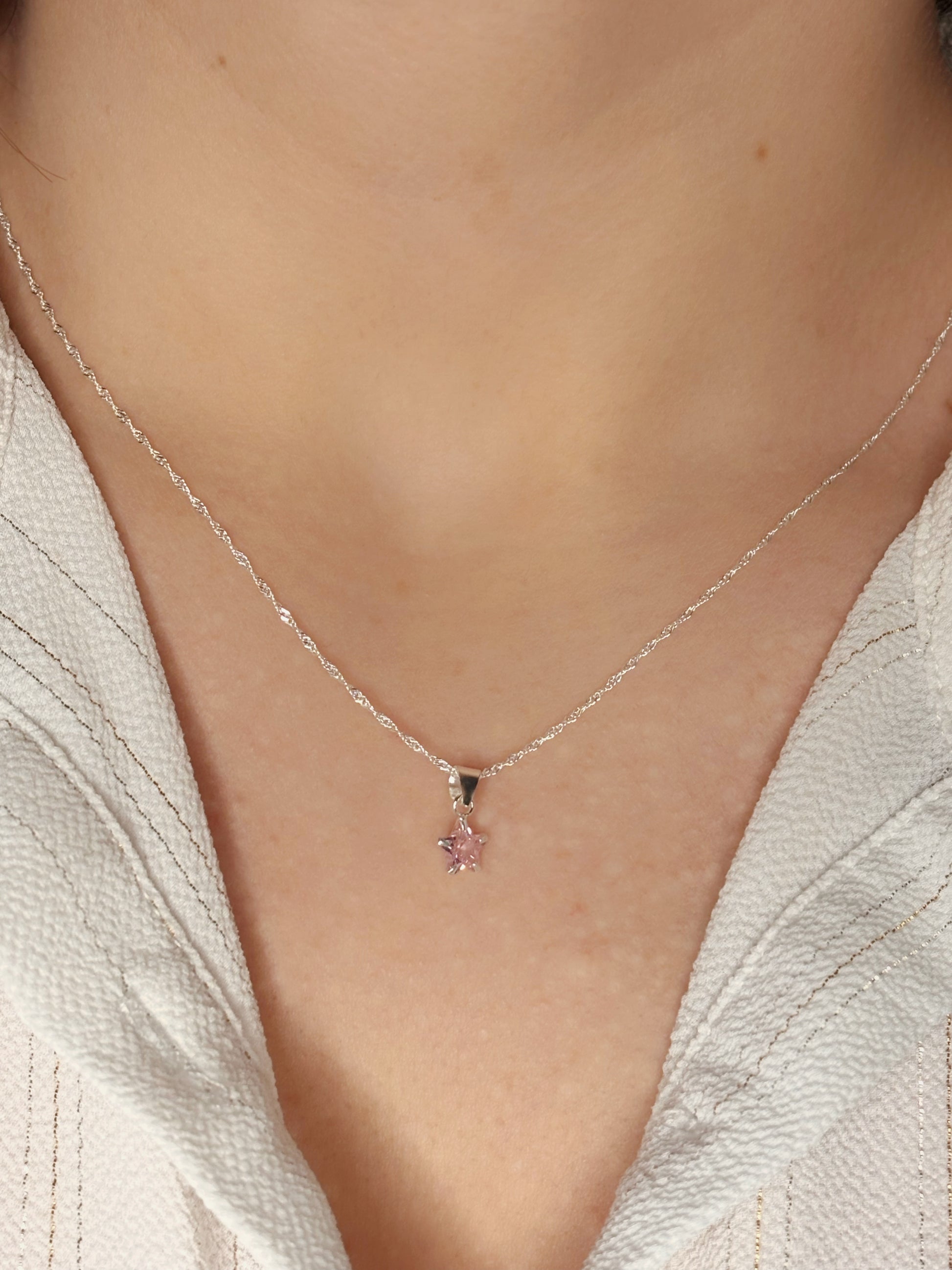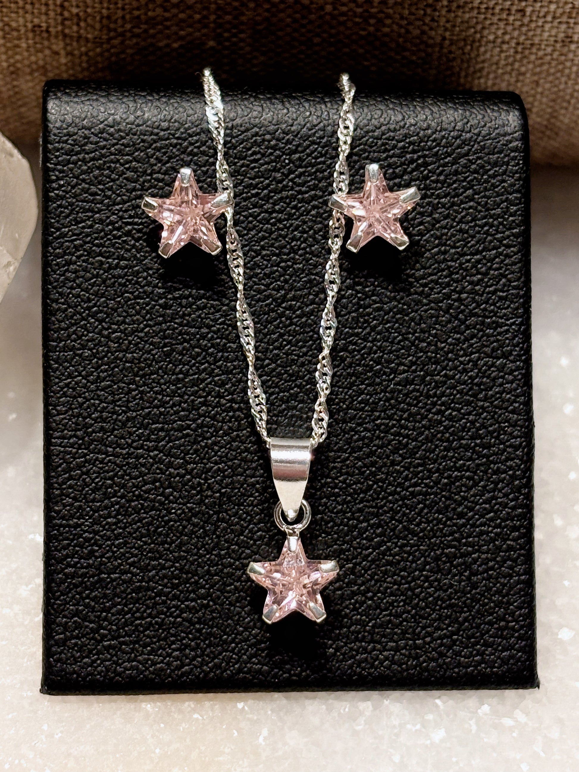 Conjunto en Plata ley 925 con circón en forma de estrella color rosado.