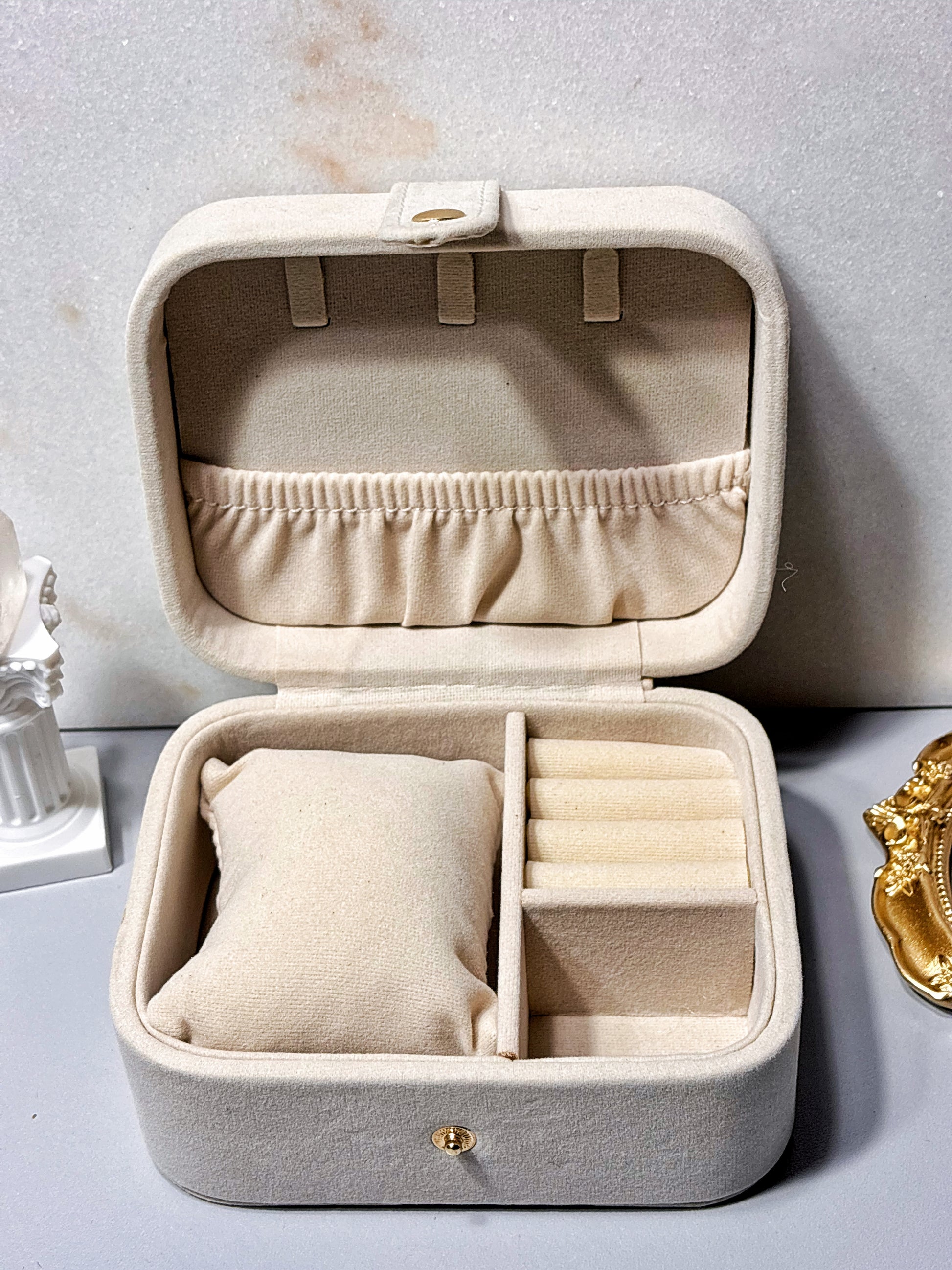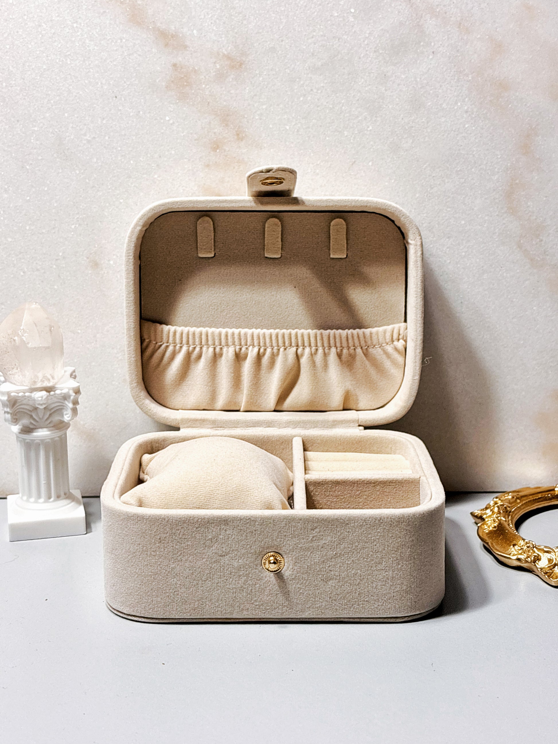 ✨ Guarda tus tesoros como se merecen, con compartimentos especiales para anillos, aros, pulseras y collares, es el complemento perfecto para mantener todo organizado y siempre a la vista. Ideal para viajes o para dar un toque de lujo a tu tocador.