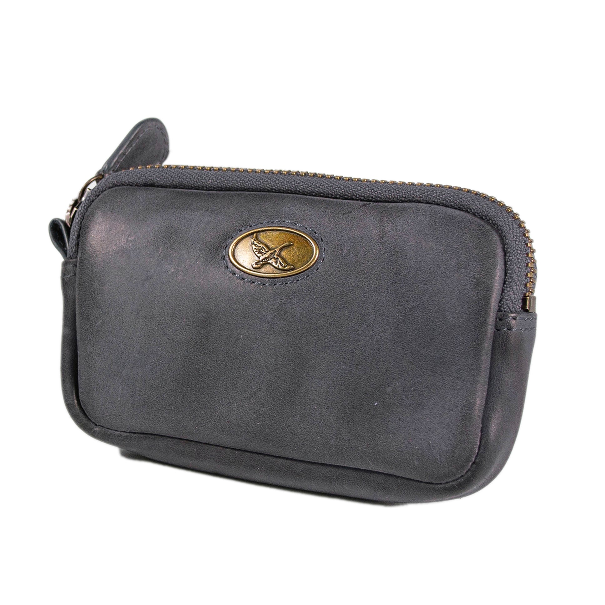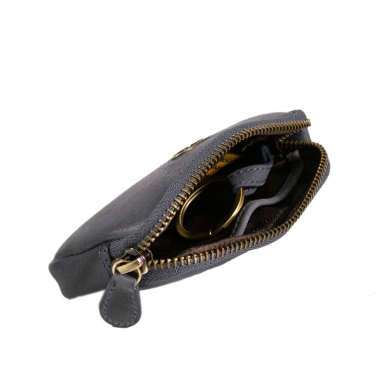 El interior está completamente asegurado con cierre de cremallera e incluye una división simple y una argolla porta llaves.