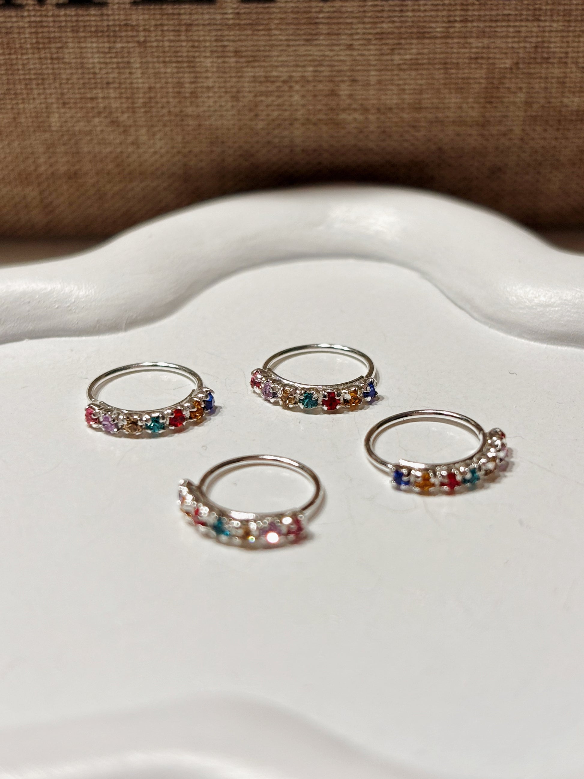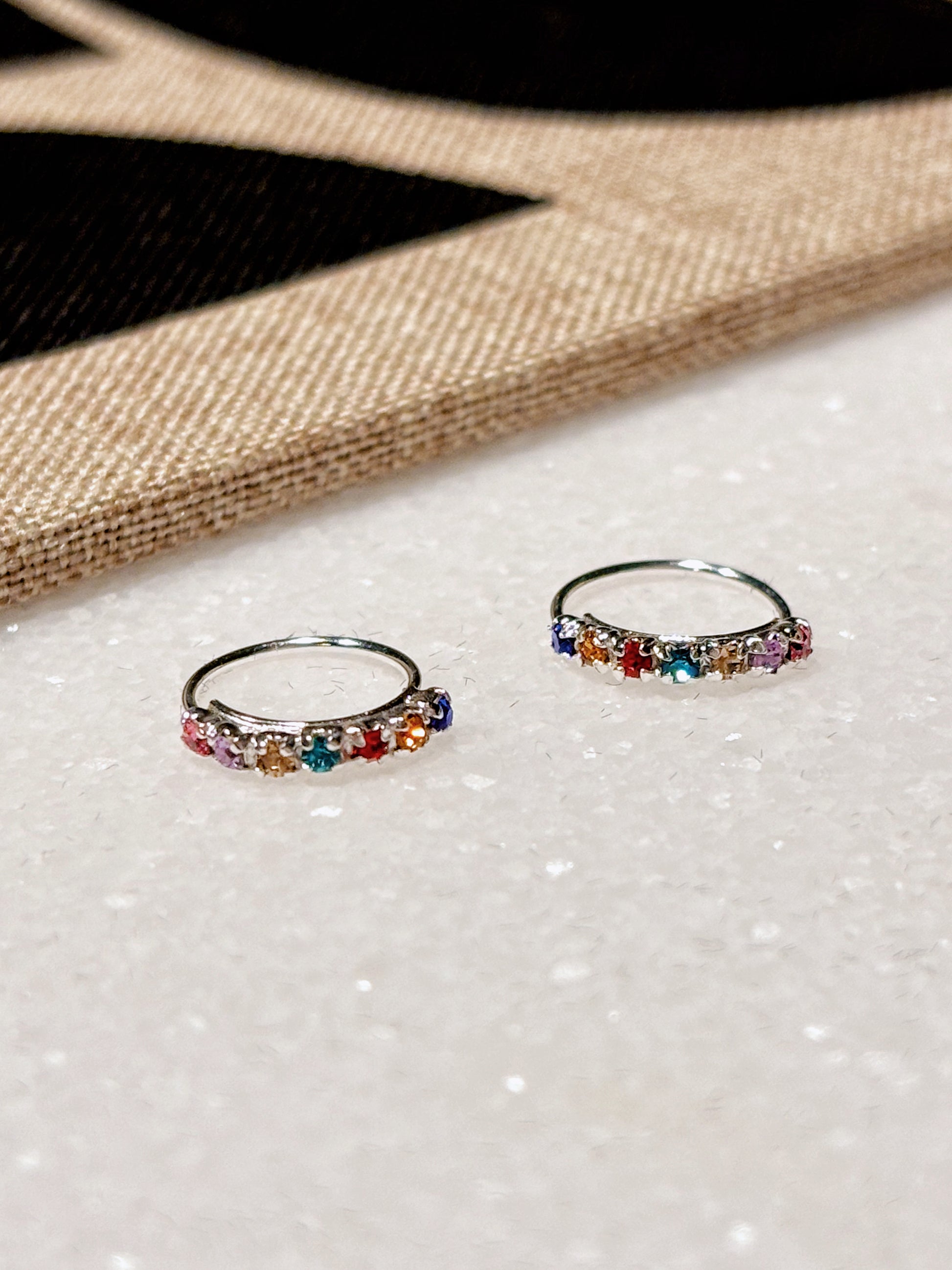 Piercing nariz en plata ley 925 con microcircones de colores.