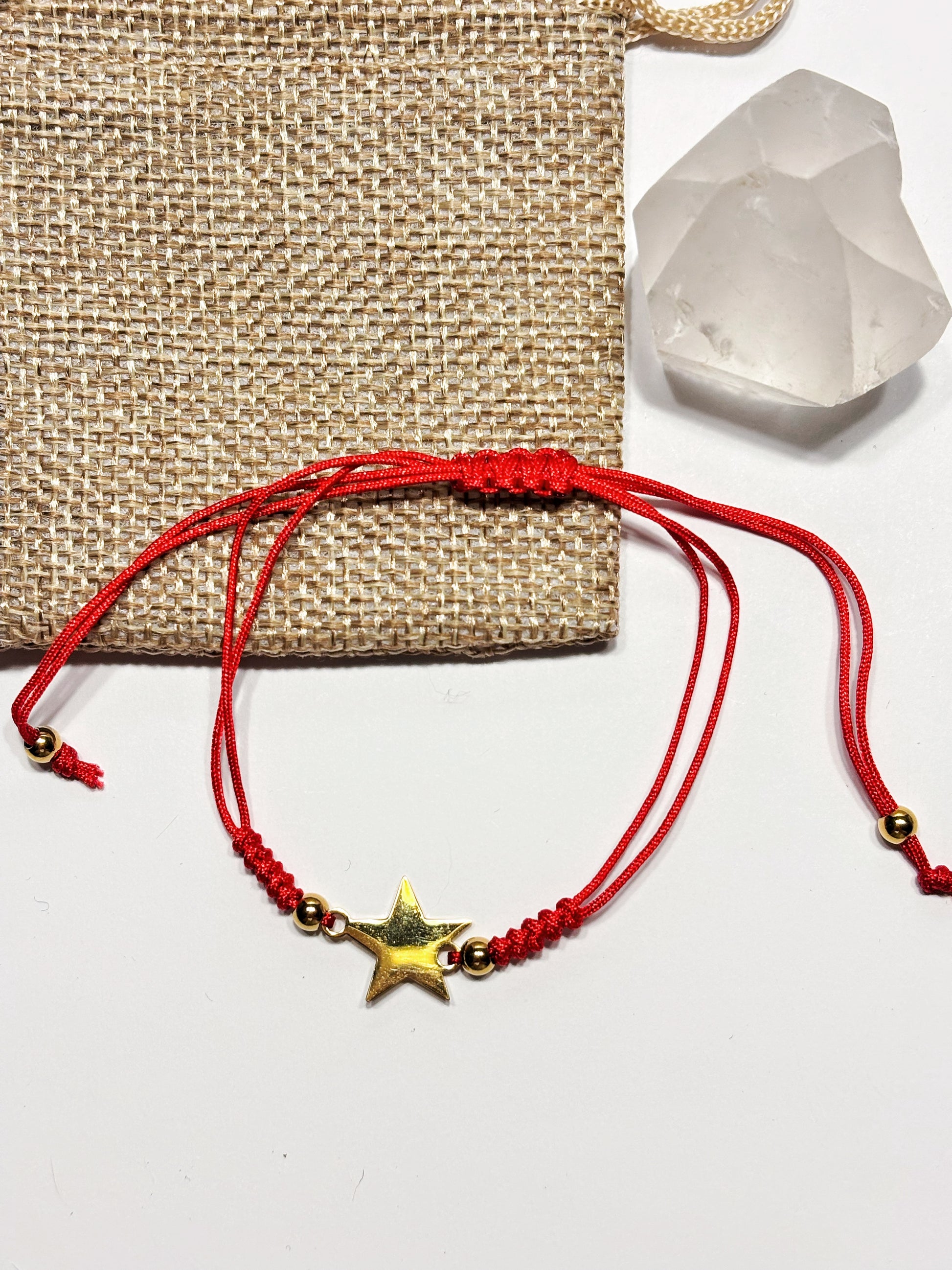 La pulsera está confeccionada en hilo rojo resistente, símbolo de protección, suerte y buena energía, y acompañada de un dije de acero inoxidable que no se oxida ni pierde su brillo.