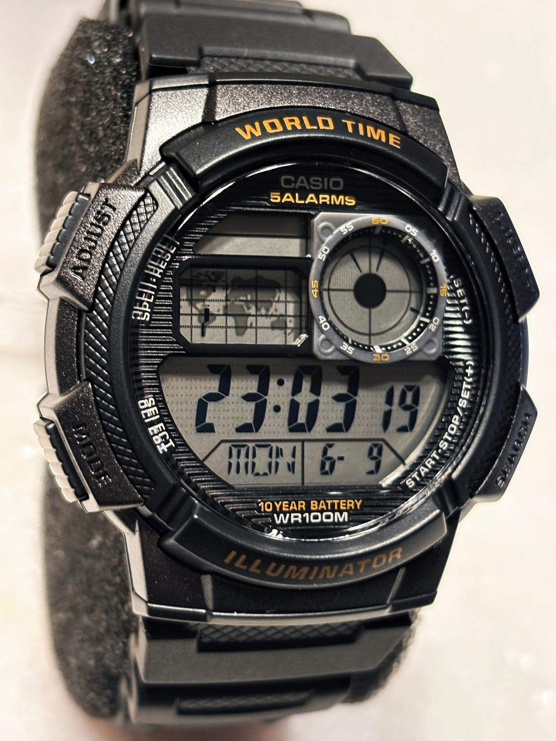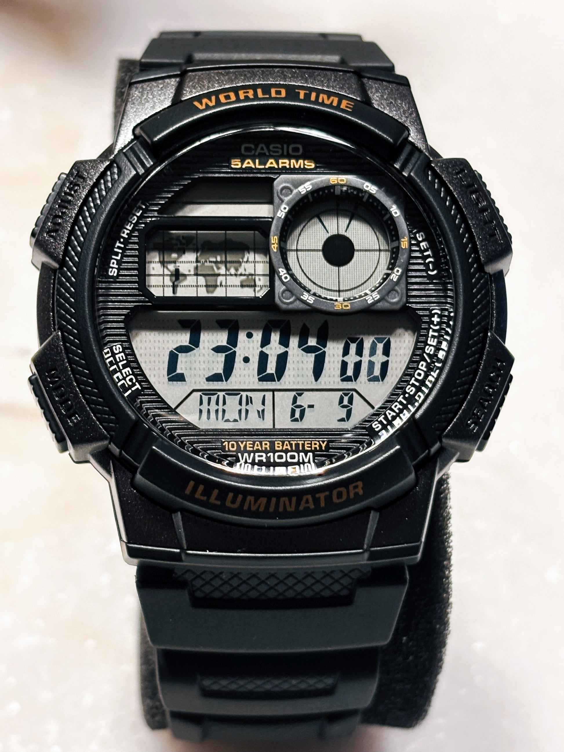 📝Características principales: Fecha, alarma, calendario, cronómetro, hora mundial, luz, temporizador, resistente al agua y duración de batería de 10 años.
